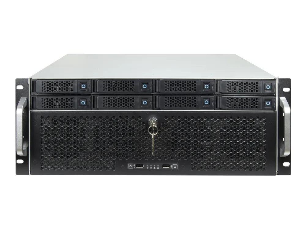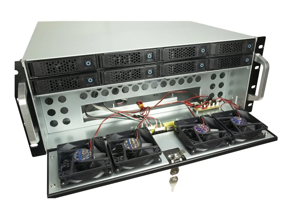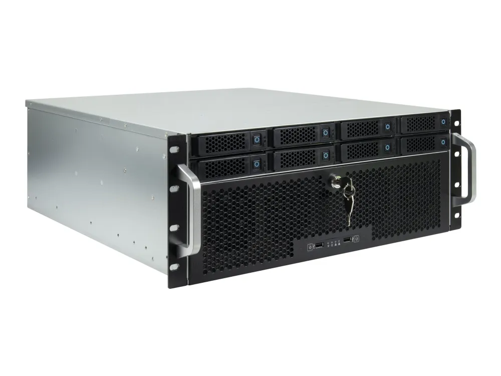 The Inter-Tech IPC 4U-4708 system cabinet is engineered for versatility and performance. Designed to accommodate a broad range of motherboard form factors such as ATX, Extended ATX, ITX, and more, it offers a flexible foundation for building high-performance systems. This rack-mountable storage case features eight hot-swap bays, allowing for easy drive maintenance and expansion. Its cooling system, with six strategically placed fans, ensures efficient heat dissipation to keep your system running smoothly. Additionally, the front panel USB 2.0 ports provide convenient access for external devices. Whether for a server build or a high-end workstation, the Inter-Tech IPC 4U-4708 offers a solid base with its ample storage options and effective cooling solutions.