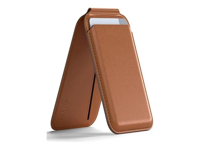 The Satechi Vegan-Leather Magnetic Wallet Stand perfectly combines style, functionality, and sustainability - a powerful add-on accessory and the perfect companion for your everyday needs. Designed with MagSafe-compatible technology, this sleek vegan-leather wallet effortlessly and securely attaches to your iPhone in a snap connection so you can conveniently carry your cards, ID, or even cash wherever you go. The versatile magnetic wallet is also designed to double as a durable and sturdy stand for your iPhone, giving you a hands-free option to browse the web, stream videos, or hop on a FaceTime call in both portrait and landscape modes.
