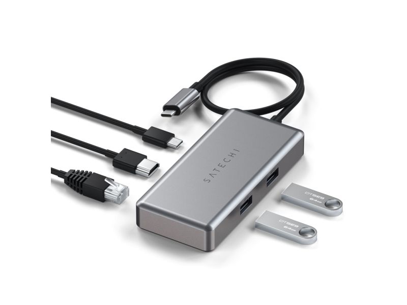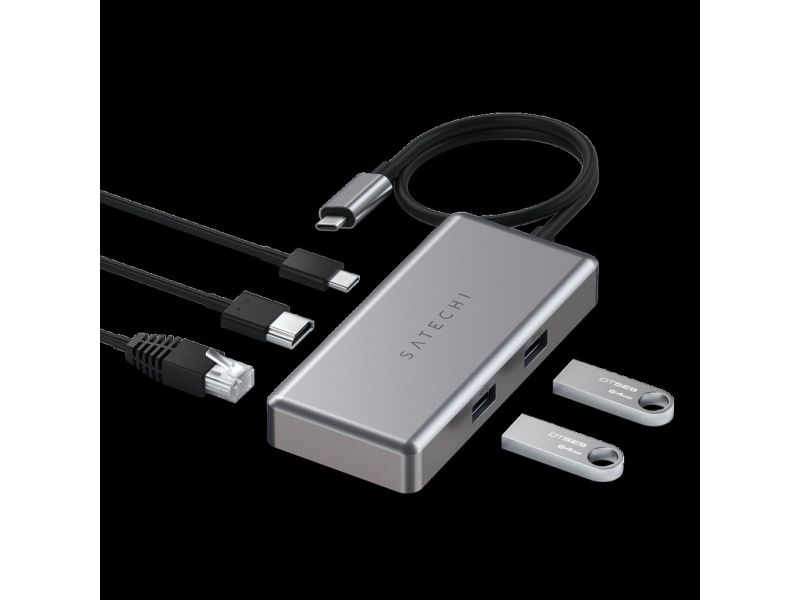 Satechi ST-UCGHM, USB Typ-C, HDMI, RJ-45, USB Typ-C, USB 3.2 Gen 1 (3.1 Gen 1) Type-A, 5000 Mbit/s, 60 Hz, Grau, 1 Stück(e)