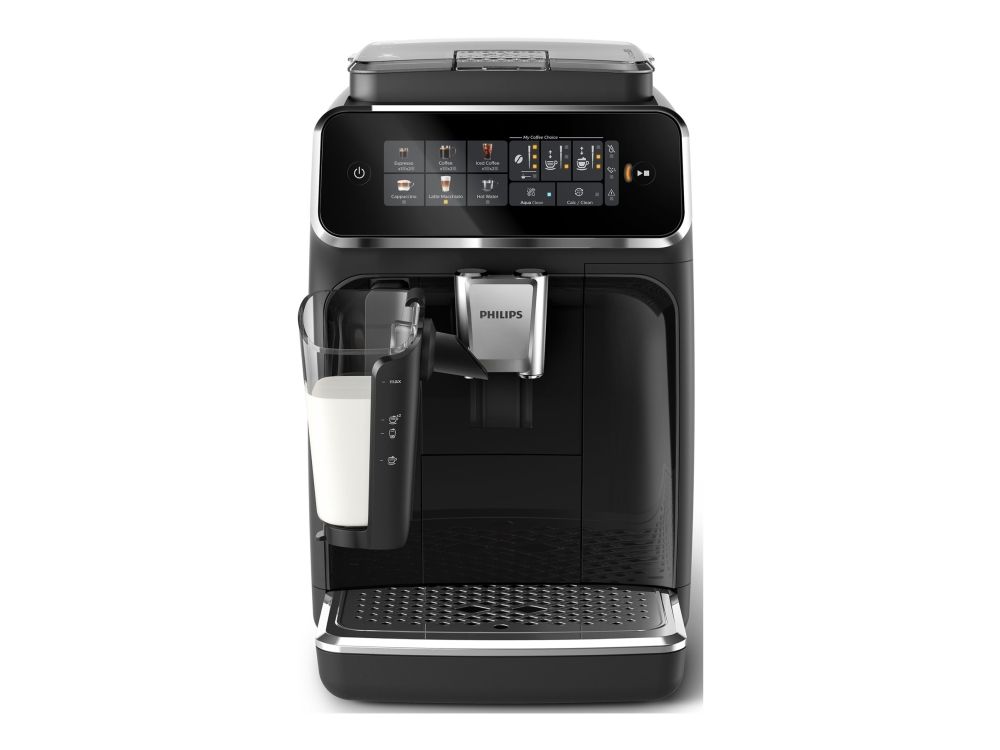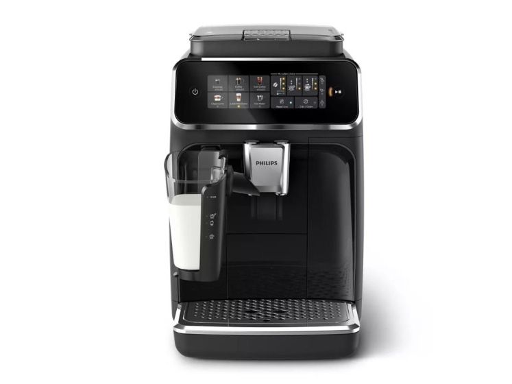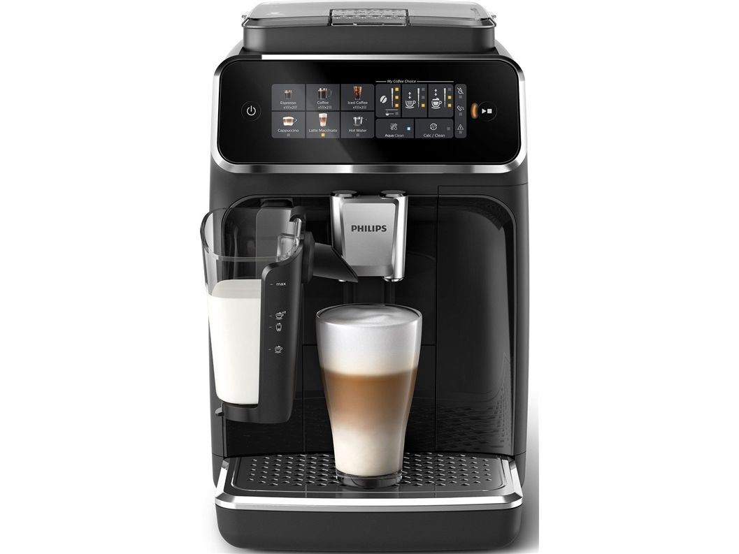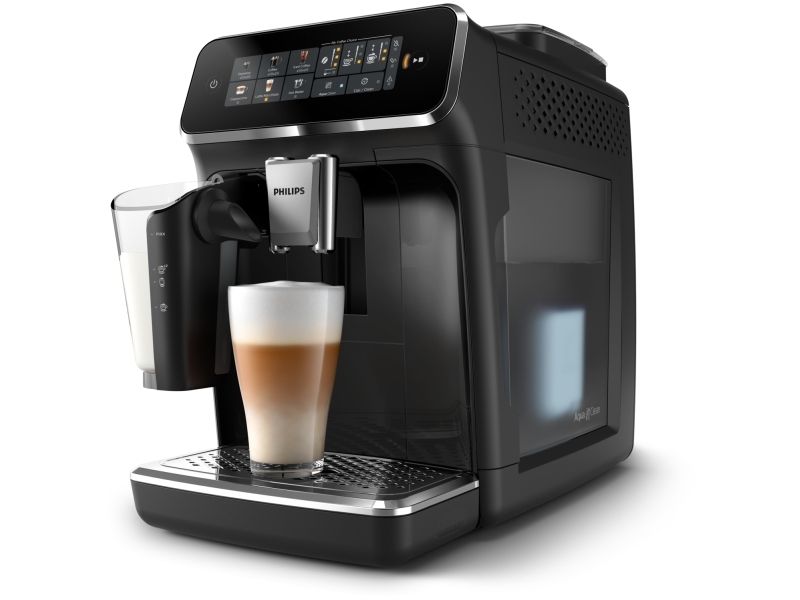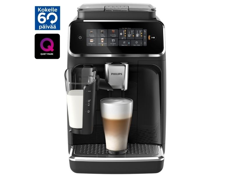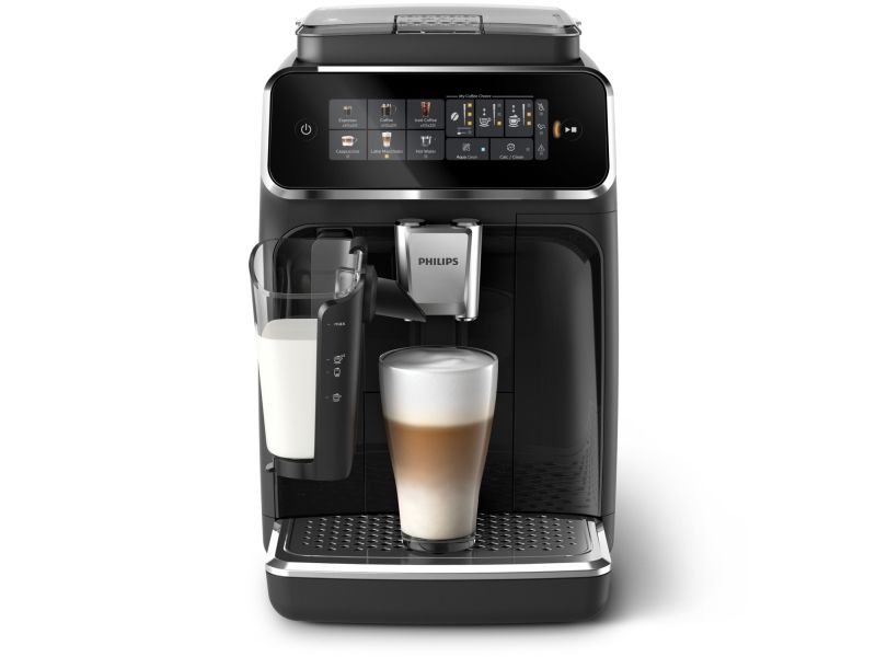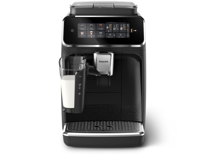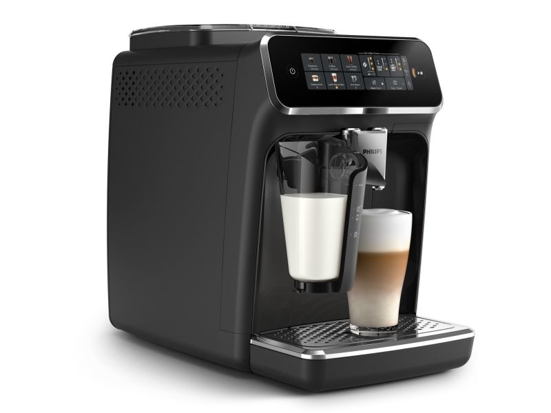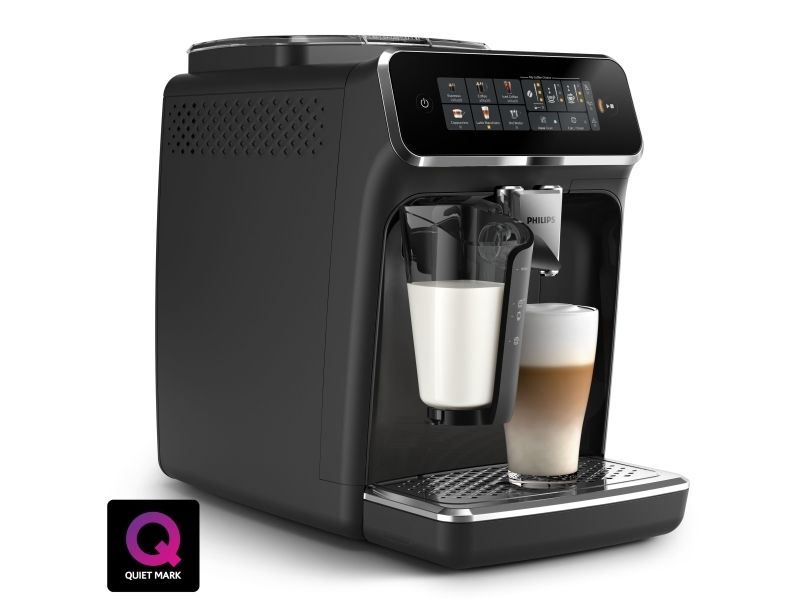 Featuring SilentBrew technology, the machine operates quietly, making it ideal for any time of day. The cyclonic foam technology and additional milk frother work in harmony to create creamy, frothy milk that elevates the coffee experience. Users can easily adjust coffee and milk quantities through intuitive touch-sensitive controls, while the auto shut-off feature ensures safety and energy efficiency. The Philips EP3341 excels in performance and is stylishly designed with a plastic and metal body that fits seamlessly into any kitchen layout.