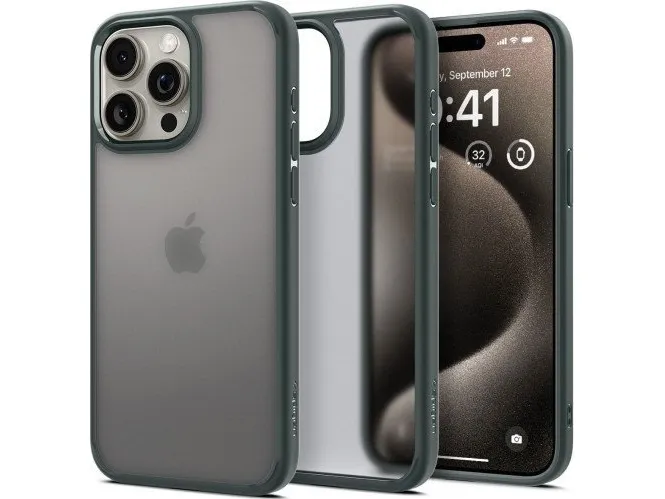 Spigen ACS06569, Cover, Apple, iPhone 15 Pro Max, 17 cm (6.7"), Grün, Transparent