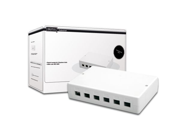 Das Gehäuse ist Teil der modularen DIGITUS® Anschlusstechnik und dient zum Aufbau von Konsolidierungspunkten an Schreibtischen, in Zwischendecken oder in Unterflursystemen. Das Leergehäuse eignet sich für DIGITUS® Keystone Module.