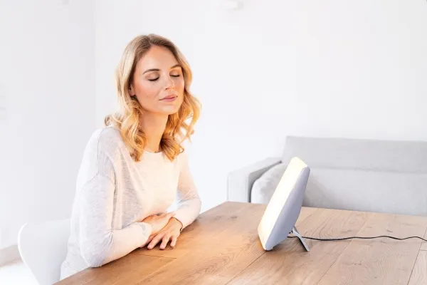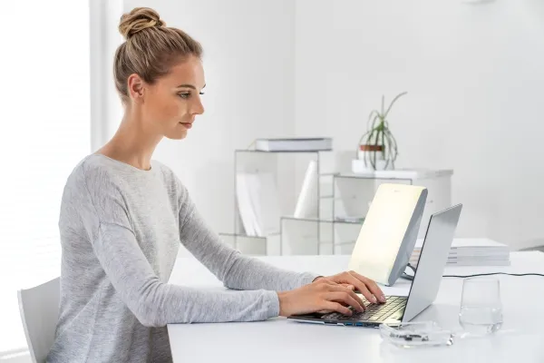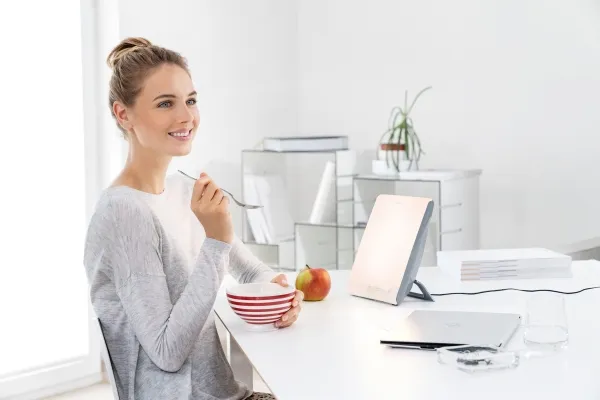The daylight therapy lamp imitates the natural sunlight through the course of a day. The lamp allows you to support the different working and resting phases of a work day: therapy, concentration and relaxation. For a regulated day-night rhythm.