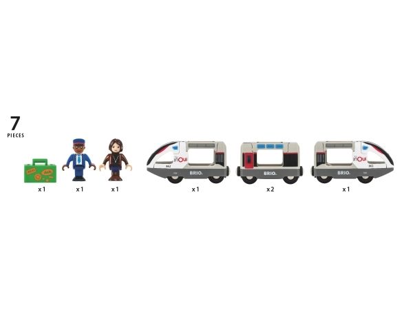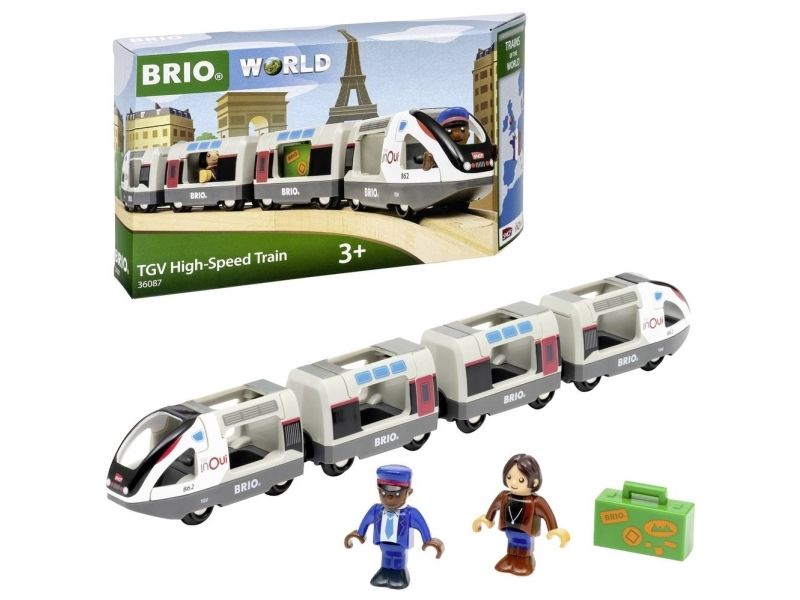 Reise mit dem 36087 TGV Hochgeschwindigkeitszug vom romantischen Paris bis an die französische Riviera. Dieser Hochgeschwindigkeitszug ist der längste Zug der BRIO World und bietet Platz für 6 Figuren. Der TGV im Originaldesign fährt durch ganz Frankreich, du kannst mit ihm aber auch nach Italien, Spanien und Deutschland reisen. Entdecke eindrucksvolle Zugstrecken und berühmte Züge aus der ganzen Welt mit unserer Trains of the World Serie.