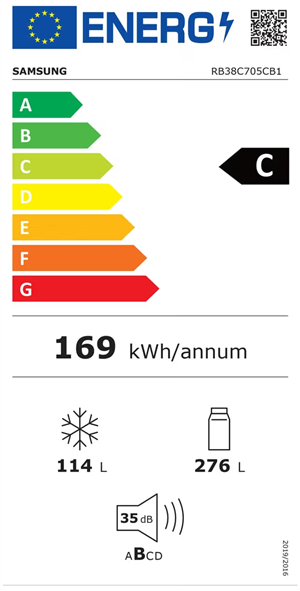 Samsung 385 l Kühl-/Gefrierkombination mit Metal Cooling und AI Energy Mode, 390 l, NoFrost-Funktion (Kühleinheit), 8 kg/24h, C, Fresh Zone Fach, Schwarz