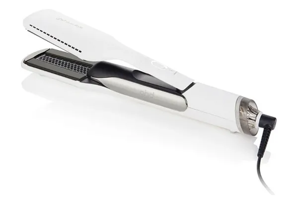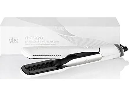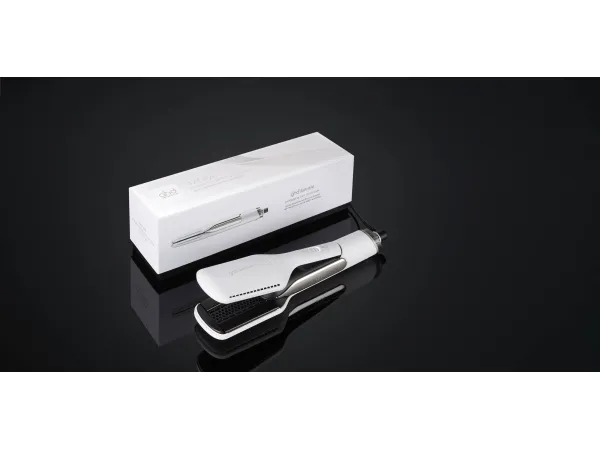 Featuring an exclusive Shine Shot™ mode, for dry hair only, to transform into a ghd styler operating at 185°C with no air - delivering those instant frizz-free results*** with 2x more shine**** and up to 42% humidity resistance*****. For seamless, snag-free styling, each advanced floating plate is finished with an ultra-gloss coating to glide smoothly from root to tip. A bespoke acoustic system keeps sound levels low whilst drying for a more refined styling experience. Our 2-in-1 styler boasts an energy efficient yet powerful performance, harnessing an aerodynamic system to minimise energy waste for up to 45% less energy consumption†.GHD Duet Style. Type: Straightening iron, Technology: Steam. Product colour: White. Auto power off after: 30 min. Quantity per pack: 1 pc(s)