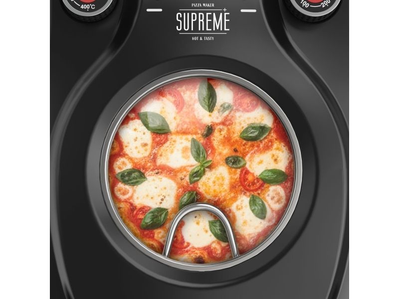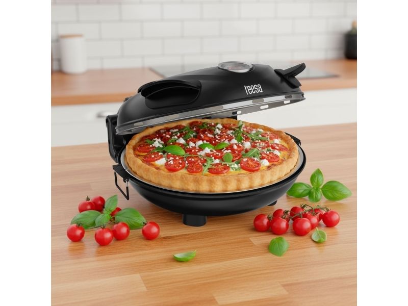TEESA SUPREME Pizzabackofen 1200 W 32 cm mit Sichtfenster abnehmbarer Stein