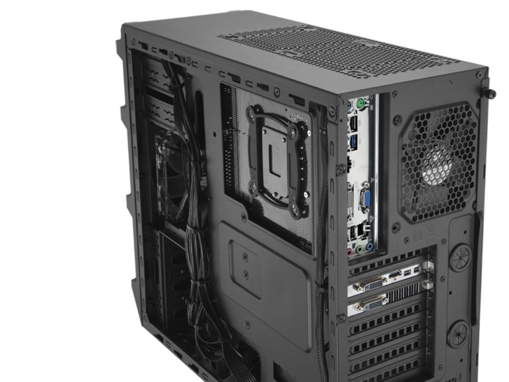 Builds should be easy, no matter what your budget. Drive installation is tool-free, and you get cable routing holes for neater-looking builds and better airflow. And, there’s a CPU cutout to allow for cooling upgrades without removing the motherboard. The front intake fan filters help keep dust out of the interior, and the front panel has dual USB 3.0 ports for fast performance from USB flash drives and portable hard drives.