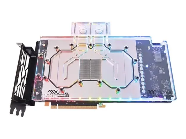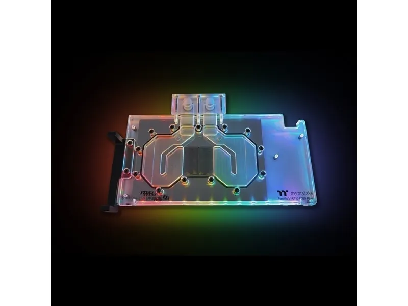 Elevate your gaming experience with the Thermaltake Pacific V-RTX 4080 Plus, an advanced video card liquid cooling system designed for the MSI GeForce RTX 4080 series. This cooling solution not only ensures optimal performance by maintaining lower temperatures but also enhances the aesthetic appeal of your setup with its vibrant RGB lighting. Compatible with major RGB ecosystems, it allows for seamless integration into your existing setup, creating a synchronized light show that reflects your gaming mood. The premium materials used in its construction, including acrylic, aluminum, and copper, ensure durability and efficient heat dissipation. Moreover, the inclusion of a mounting kit and the use of G1/4" thread make installation straightforward, allowing you to focus on what matters most - gaming at your best.