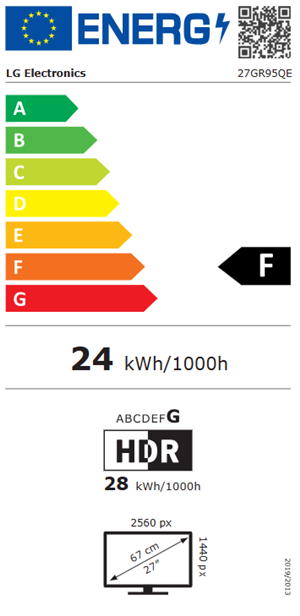 [OUTLET] - LG UltraGear 27GR95QE-B - OLED-Monitor - Gaming - 27" (26.5" til bei se) - 2560 x 1440 QHD @ 240 Hz - 1000 cd/m² - HDR10 - 0.03 ms - 2xHDMI, DisplayPort