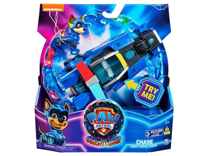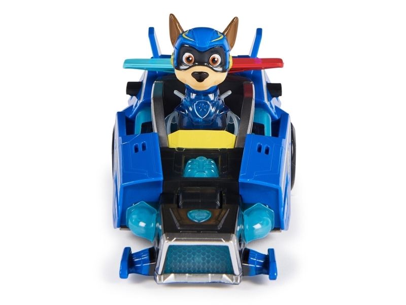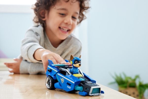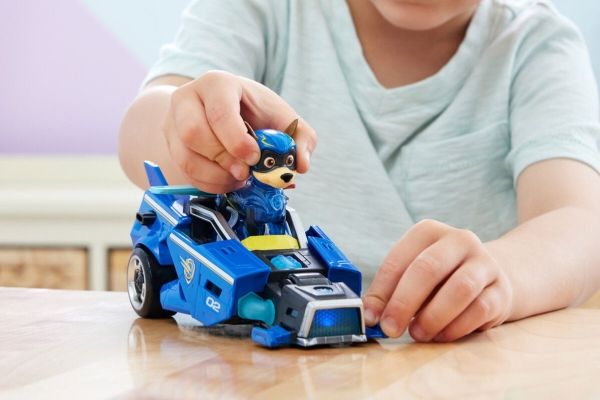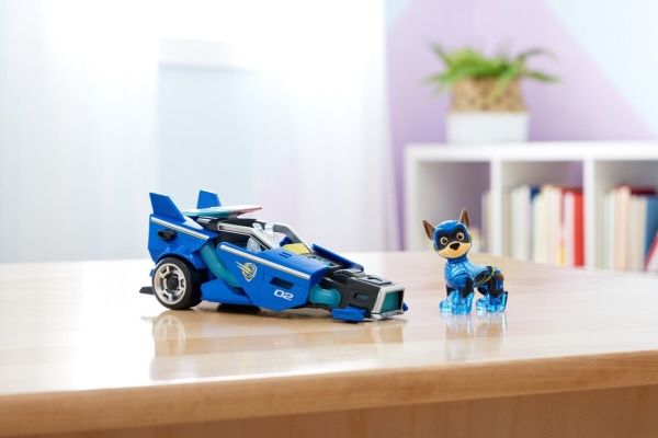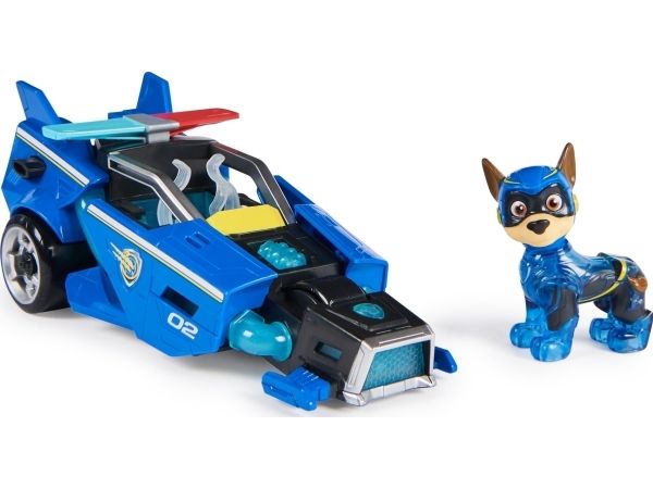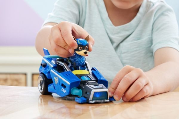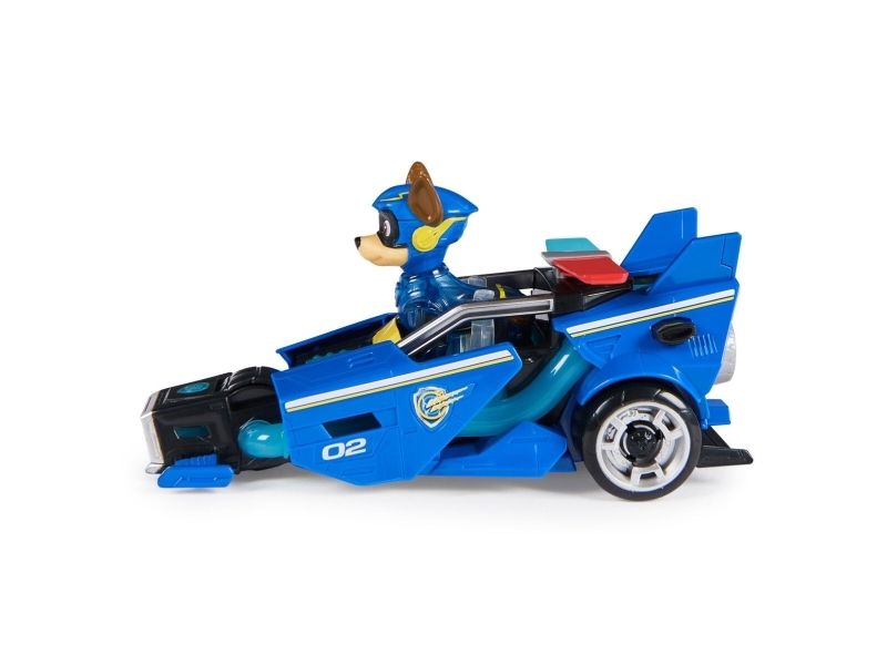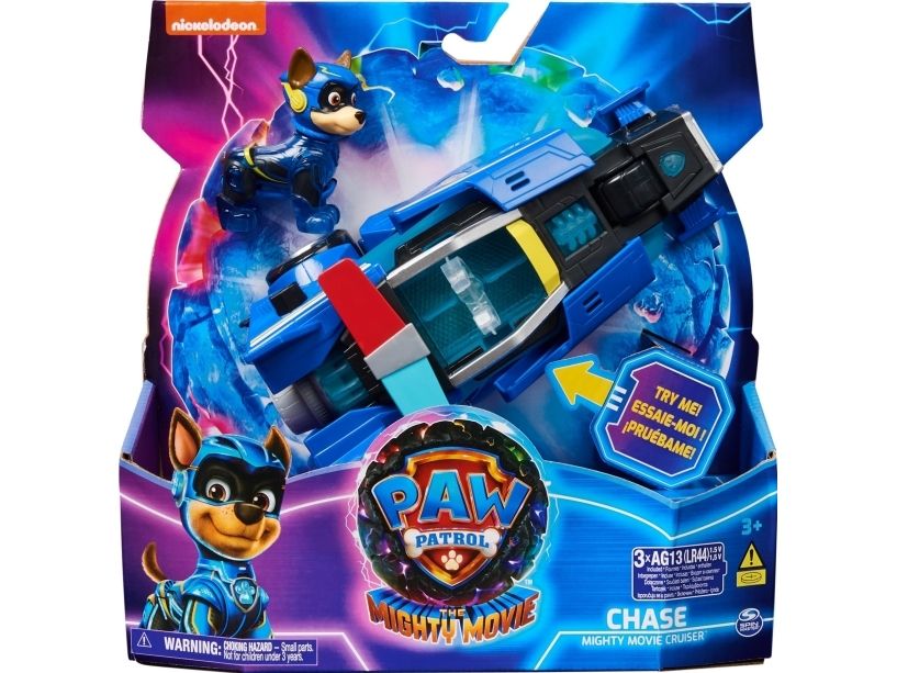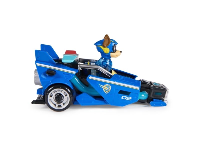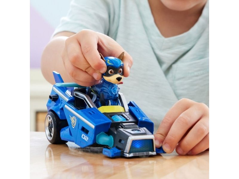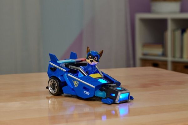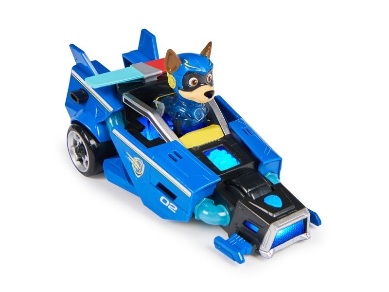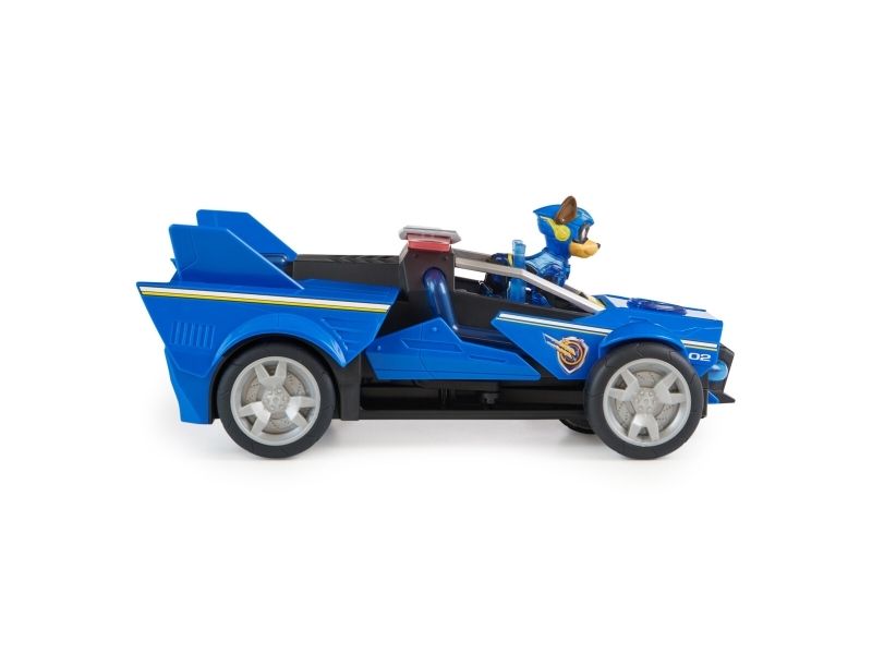 PAW Patrol : Der Mighty Kinofilm, 18cm langes Superhelden-Basis-Fahrzeug Spielzeugauto von Chase mit Welpenfigur, Polizeiauto mit Licht- und Geräuscheffekten, Spielzeug geeignet für Kinder ab 3 Jahren, Polizeiwagen, PAW Patrol, 3 Jahr(e), LR44, Kunststoff, Schwarz, Blau