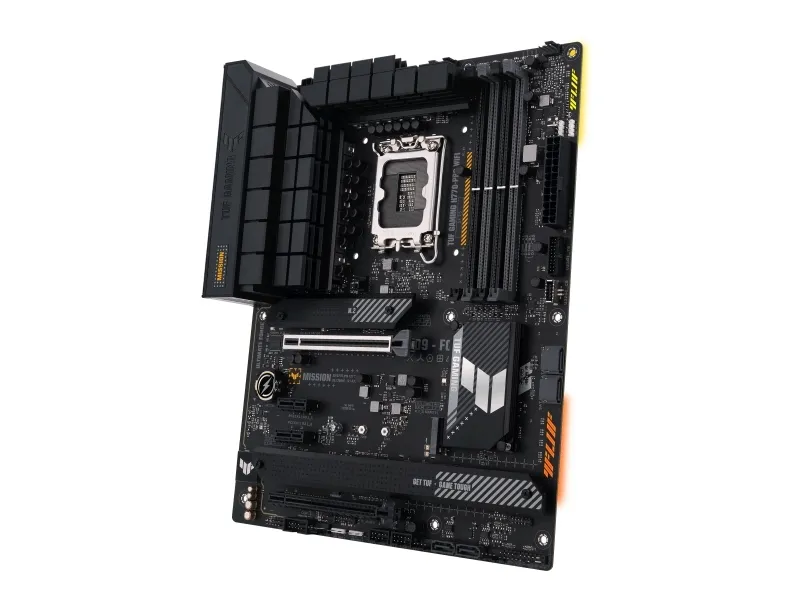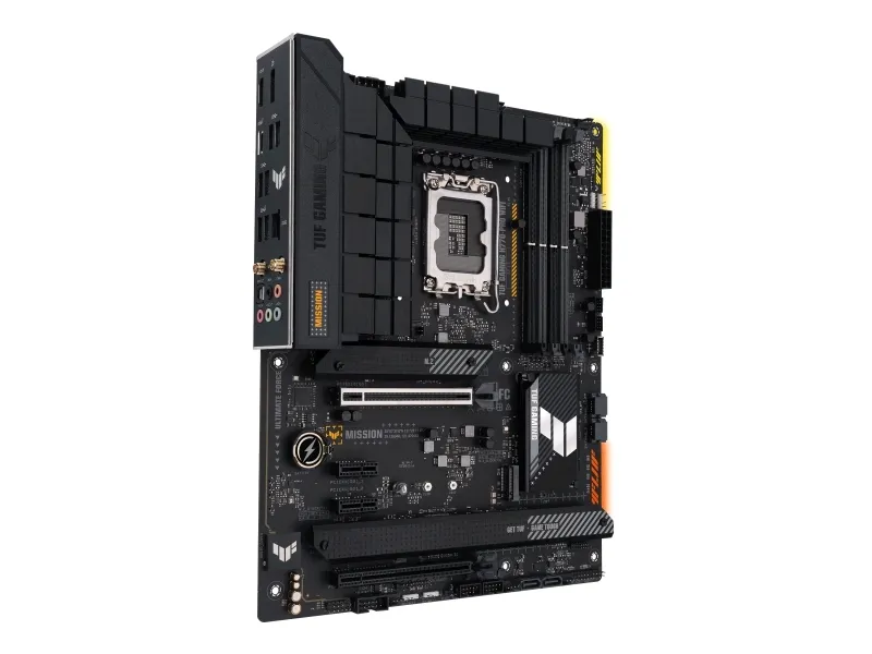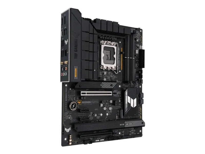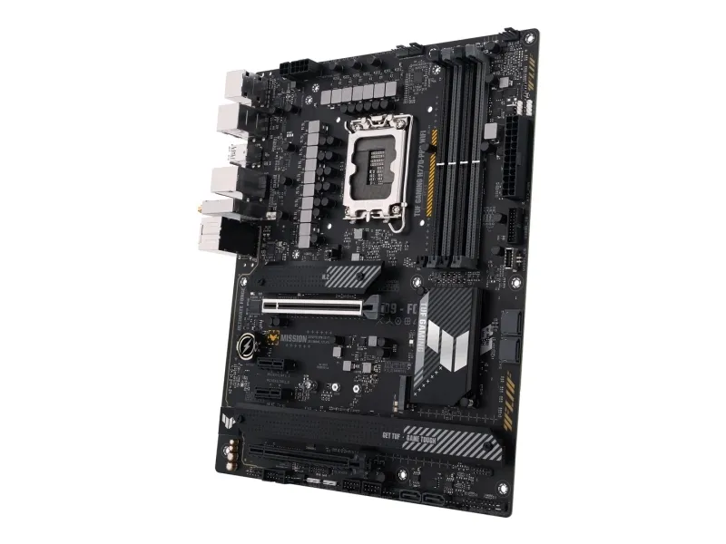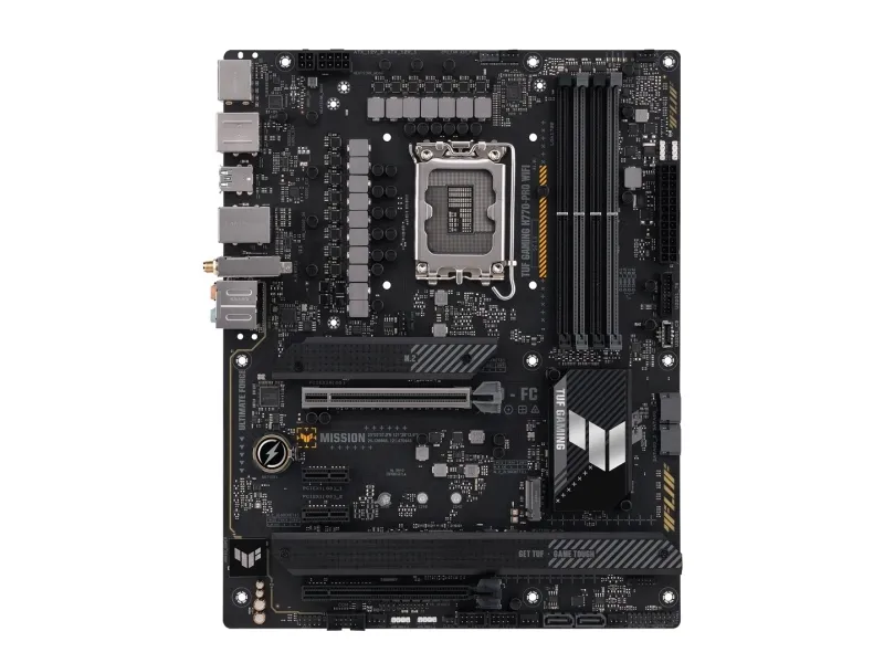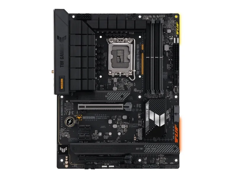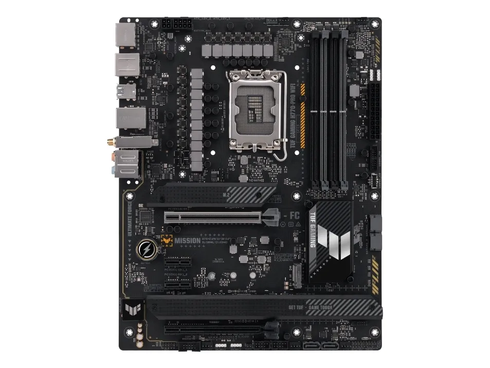 TUF GAMING H770-PRO WIFI takes all the essential elements of the Intel processors and combines them with game-ready features and proven durability. Engineered with military-grade components, an upgraded power solution and a comprehensive cooling system, this motherboard goes beyond expectations with rock-solid performance for marathon gaming. TUF GAMING motherboards also undergo rigorous endurance testing to ensure that they can handle conditions where others may fail. Aesthetically, this model incorporates an embossed nameplate and geometric design elements to reflect the dependability and stability that defines the TUF GAMING series.