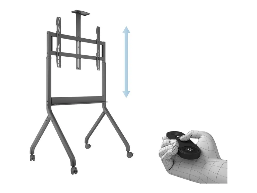 Making a presentation or setting up a meeting has never been easier. Simply set the desired height and proceed with your tasks hassle-free. The motor-driven height adjustment allows for smooth transitions, catering to diverse presentation and digital signage needs. Its extensive height adjustment range accommodates both sitting and standing audiences, making it a versatile solution for any environment.