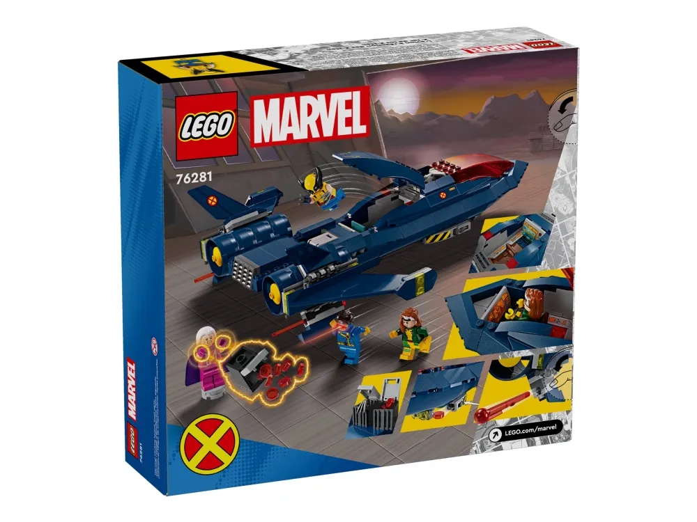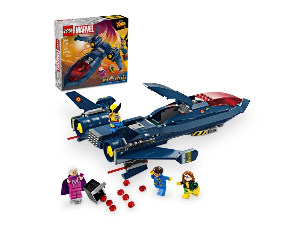 Der LEGO® Marvel X-Jet der X-Men (76281) ist das ultimative Transportmittel für Fans von supercoolen Flugzeugen, LEGO Marvel Bauspielzeugen und der TV-Serie X-Men ’97 aus den Marvel Studios. Wenn du ein LEGO Marvel Bauspielzeug suchst, das voll im Trend liegt, dann ist der X-Jet der X-Men genau das richtige Geschenk für ein Kind ab 8 Jahren. Denn mit diesem baubaren Spielzeugflieger wird sein Superheldenstatus ein völlig neues Niveau erreichen. Das spektakuläre Flugzeug aus diesem Bauset basiert auf dem X-Jet in X-Men ’97 und lädt zu spannenden Abenteuern mit den Minifiguren Cyclops, Rogue, Magneto und Wolverine ein. Das Actionbauspielzeug verfügt über zwei Cockpits für 4 Minifiguren, 2 Shooter an beiden Seiten des Jets und 2 Shooter mit Federmechanismus unter den Flügeln. In dem baubaren Modell befinden sich auch 2 Behälter, in denen dein Kind Ersatzprojektile und Wolverines lange Klauen verstauen kann, wenn sie nicht an der Minifigur befestigt sind. Zusätzlichen digitalen Bauspaß bietet die intuitive LEGO Builder App, die Baumeister 3D-Modellansichten vergrößern und drehen und ihren Baufortschritt verfolgen lässt.
