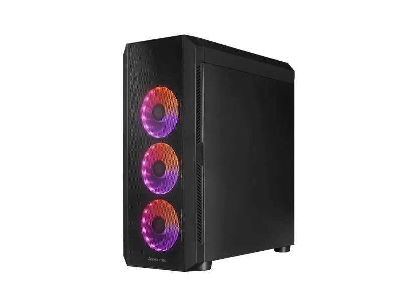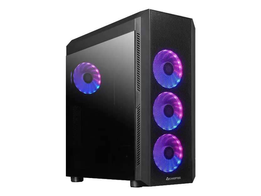 The Chieftec SCORPION 4 tower chassis combines functionality and aesthetics with its meshed front panel and RGB illumination. It supports ASUS Aura Sync, ASRock Polychrome SYNC, MSI RGB Mystic Light Sync, and Gigabyte RGB Fusion 2.0, allowing for a synchronized lighting experience across compatible components. This chassis features a tempered-glass windowed side panel to showcase internal components, while a total of 7 expansion slots and customizable cooling options provide flexibility for various builds. Designed with user convenience in mind, the Chieftec SCORPION 4 supports ATX, microATX, and Mini-ITX motherboards and provides ample space for high-performance components, including a maximum video card length of 349 mm and a CPU cooler height of 166 mm. The built-in RGB/PWM controller and front panel connectors for USB and audio ensure easy access while enhancing the overall innovation of this sophisticated tower.
