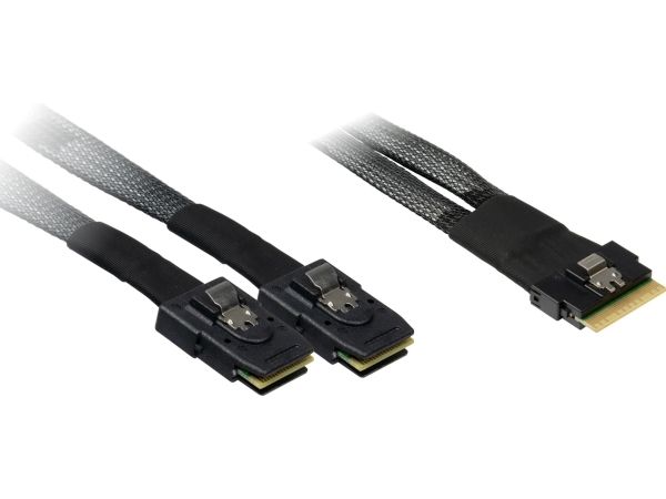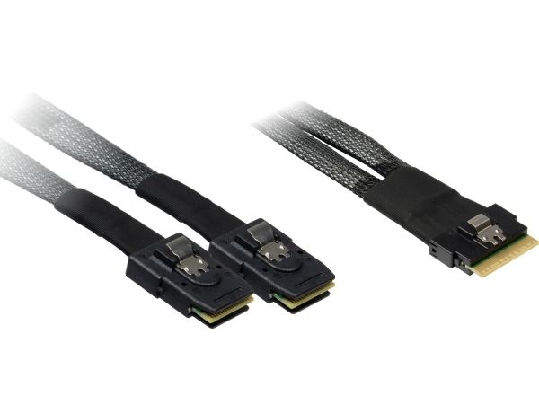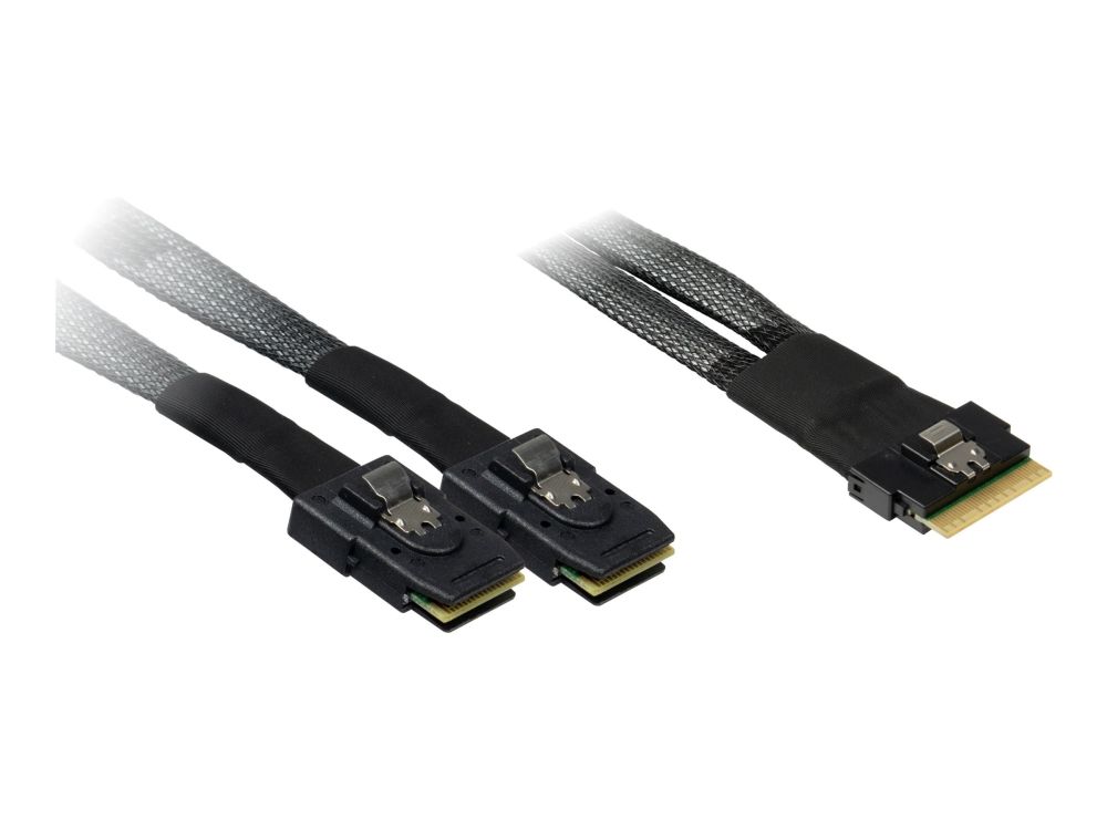 The Inter-Tech SAS internal cable is designed to provide efficient and reliable connections for storage systems. With a Serial Attached SCSI interface, this cable supports high data transfer speeds of up to 24 Gbit/s, ensuring swift access to data. The cable features an 8i Slim SAS connector on one end and a 36 pin 4i Mini MultiLane SAS connector on the other, making it a versatile choice for various setups. With its sturdy construction and specific gauge rating, this cable is suitable for professional applications where performance and dependability are essential.