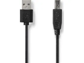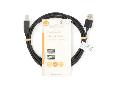 Nedis CCGL60101BK20. Cable length: 2 m. Connector 1: USB A, Connector 2: USB B, USB version: USB 2.0, Maximum data transfer rate: 0.48 Gbit/s, Connector contacts plating: Nickel, Product colour: Black