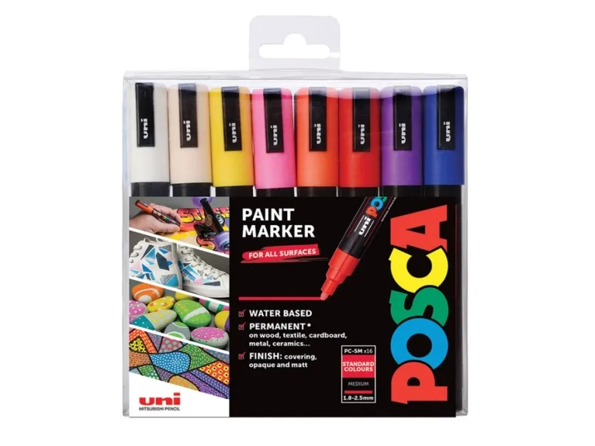 USAGE The medium tip of the PC-5M is the most versatile in the POSCA range. Providing a clear, precise line and beautiful colour, it is appreciated by both professionals and amateurs.