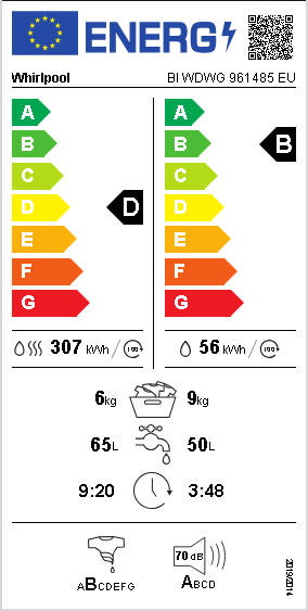 Whirlpool BI WDWG 961485 EU, Frontlader, Integriert, Weiß, Links, Tasten, Drehregler, 58 l