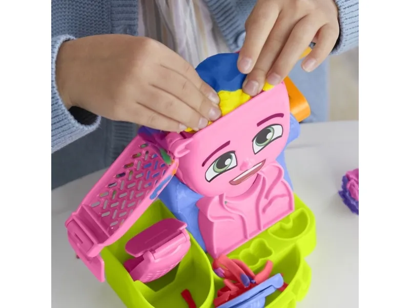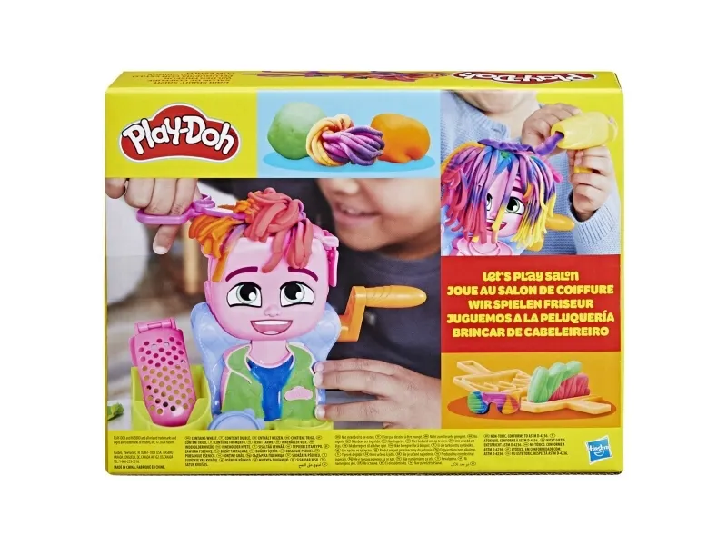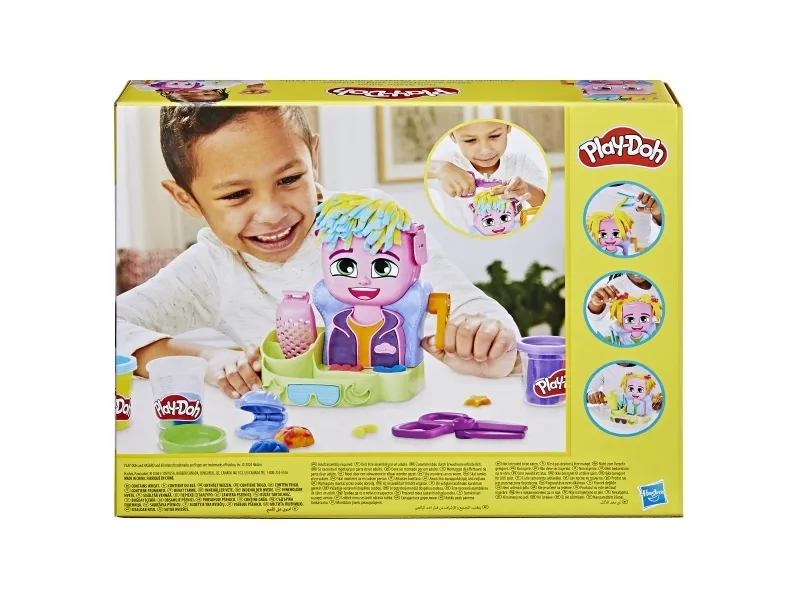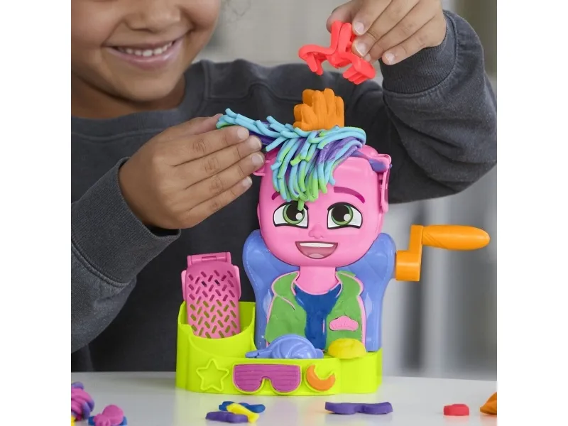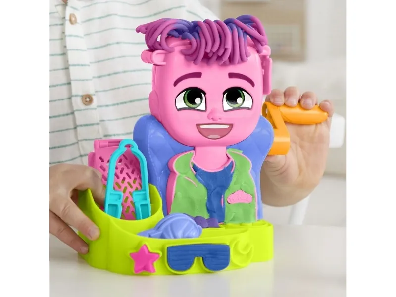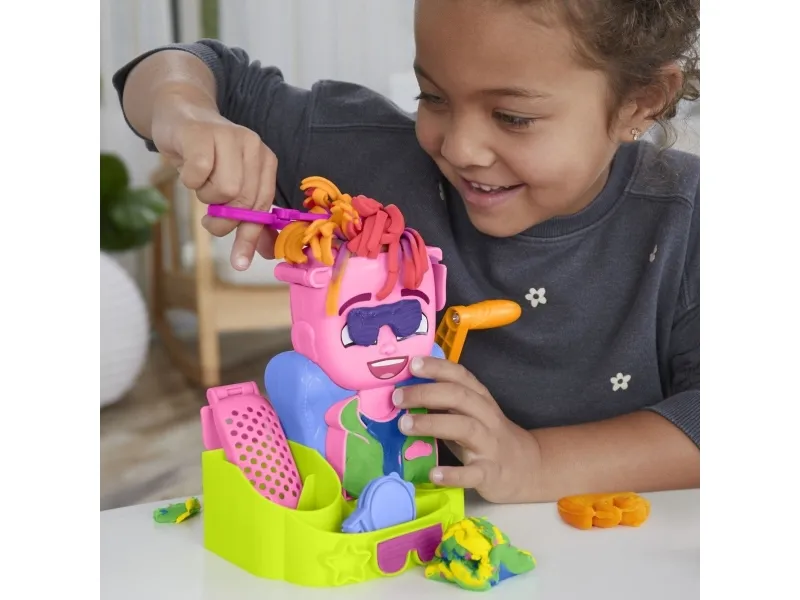 PD Wilder Friseur Hair Styling Salon Bunte Knethaare wachsen lassen, schneiden <(>&<)> stylen - wer kreiiert die wildeste Friseur? Der größte Frisierkopf von Play-Doh -für noch größeren Spielspaß! Mit der verbesserten Mechanik wachsen die Knethaare kinderleicht. Ob Locken oder glatte Haare- beides kann in bunten Farben geknetet werden. Die zweifarbige Knete sorgt für extra viel Farbe in der Friseur. Mit vielen tollen Stylingtools und Accessoires.
