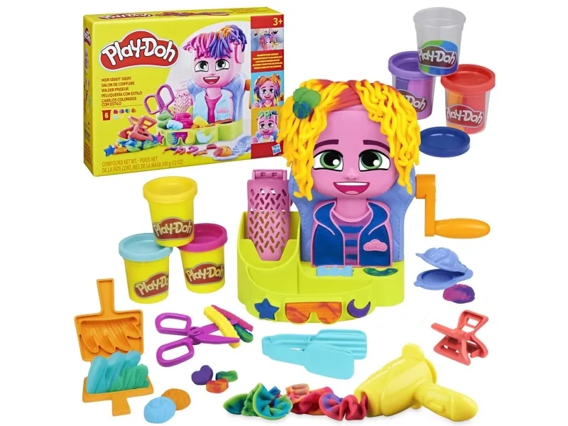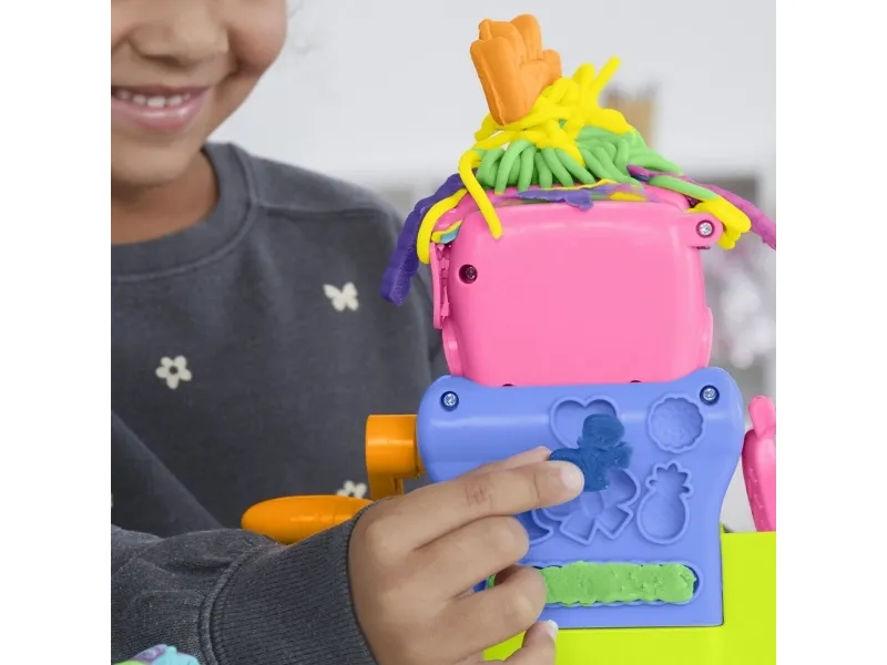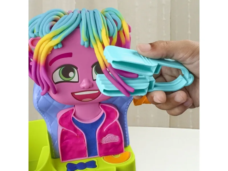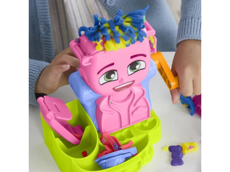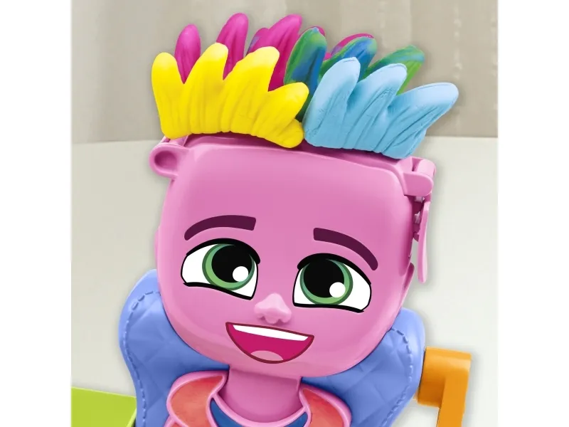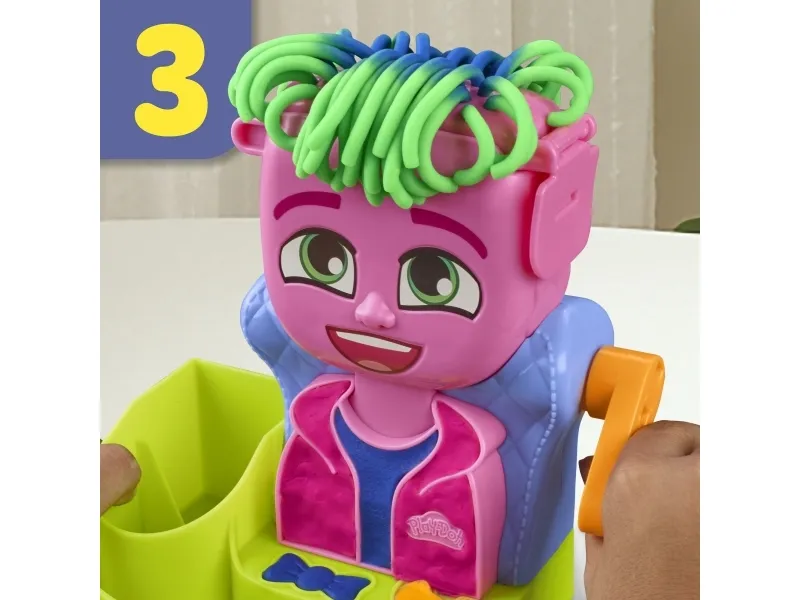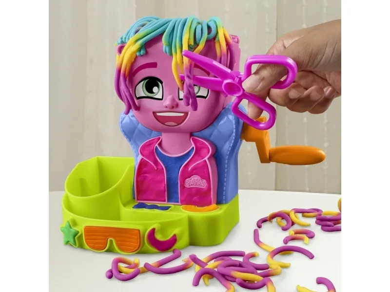 PD Wilder Friseur Hair Styling Salon Bunte Knethaare wachsen lassen, schneiden <(>&<)> stylen - wer kreiiert die wildeste Friseur? Der größte Frisierkopf von Play-Doh -für noch größeren Spielspaß! Mit der verbesserten Mechanik wachsen die Knethaare kinderleicht. Ob Locken oder glatte Haare- beides kann in bunten Farben geknetet werden. Die zweifarbige Knete sorgt für extra viel Farbe in der Friseur. Mit vielen tollen Stylingtools und Accessoires.
