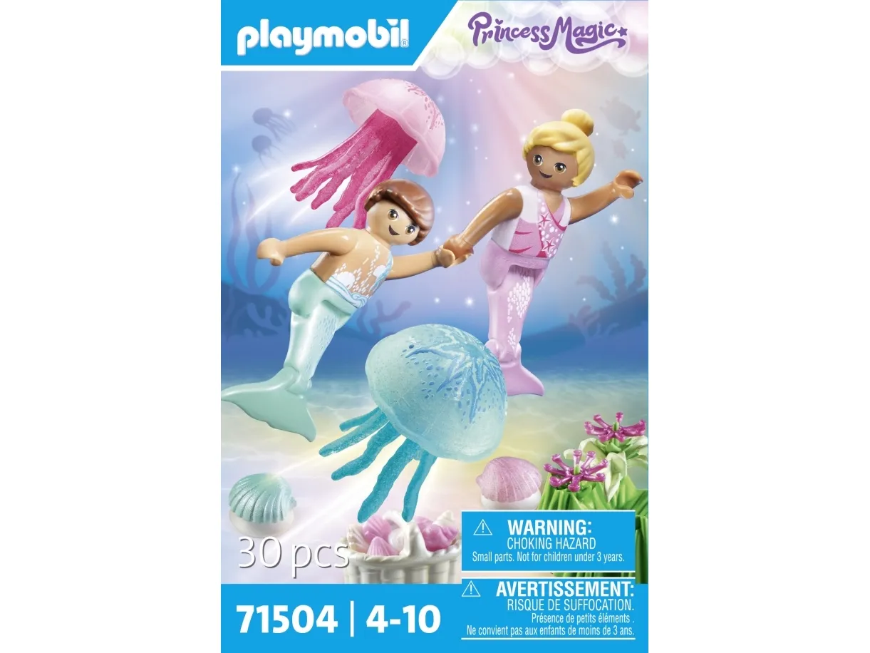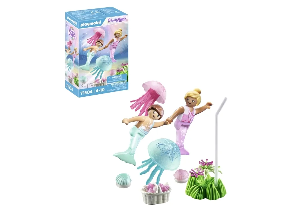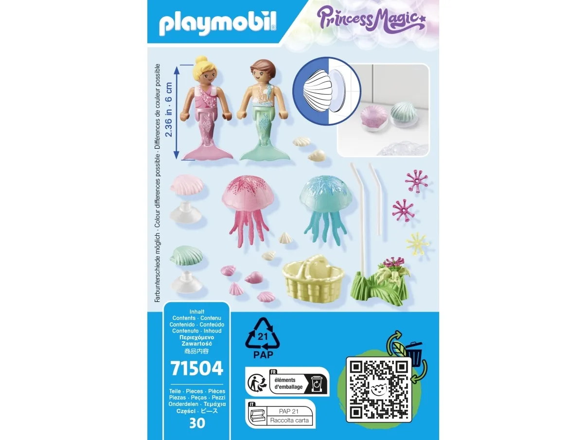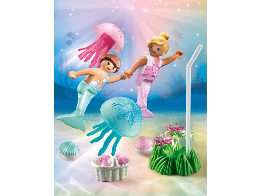 Die Meerjungfrauenkinder sammeln Blüten und Muscheln, während sie die Quallen beobachten. Mit zwei Dekomuscheln zum Befestigen auf glatten Flächen (inkl. Saugnäpfen).