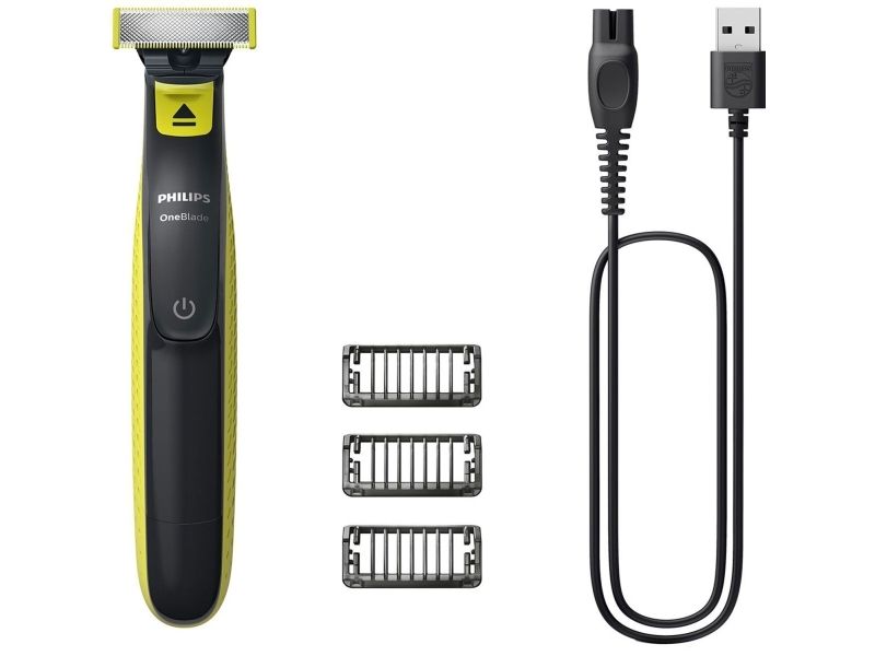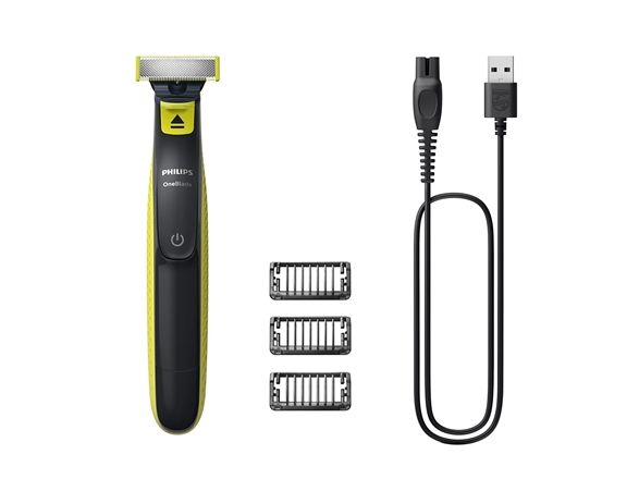 The Philips OneBlade QP2724 redefines the grooming experience by combining efficiency with convenience. This shaver is designed to suit all facial hair styles, offering stubble combs in three different sizes (1 mm, 3 mm, 5 mm) for personalized grooming. Its fully washable feature, coupled with a stainless steel blade, makes maintenance a breeze, allowing for a quick rinse under water to keep it clean. The OneBlade ensures you're always ready with 45 minutes of cordless operation after just an 8-hour charge, powered by a durable nickel metal hydride battery. Whether you prefer a dry shave for speed and convenience or a wet shave for that fresh, clean feeling, the Philips OneBlade adapts to your lifestyle, providing a comfortable shave with its ergonomic design. Embrace the flexibility and efficiency of Philips OneBlade QP2724 for a grooming experience that meets the demands of modern life.
