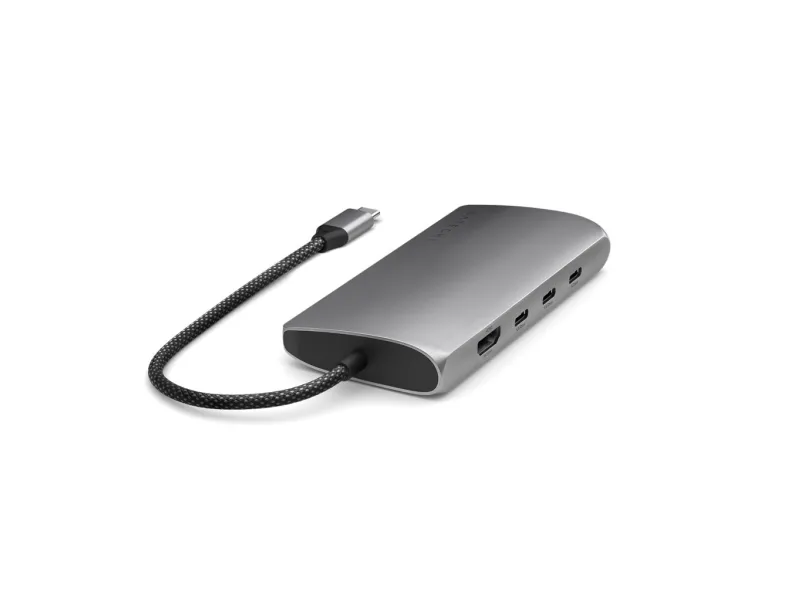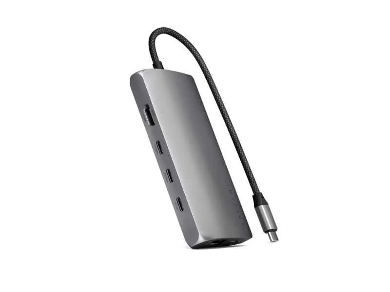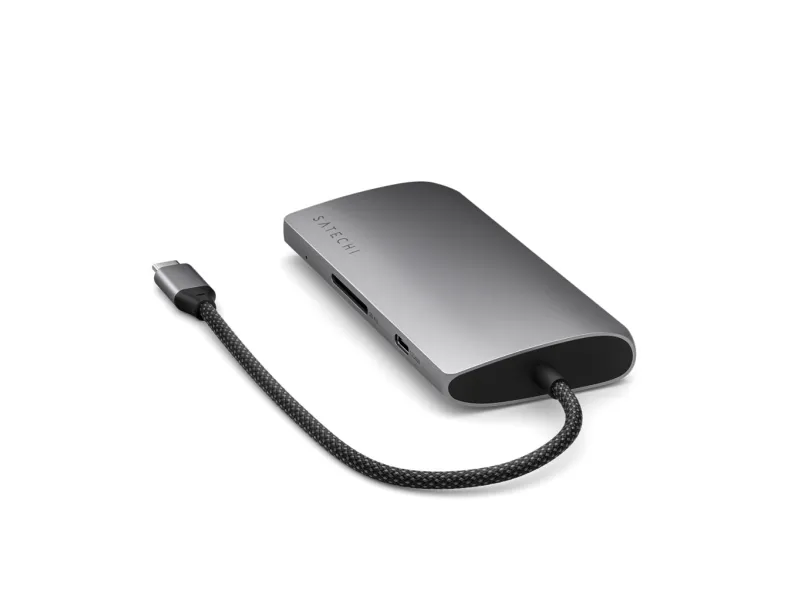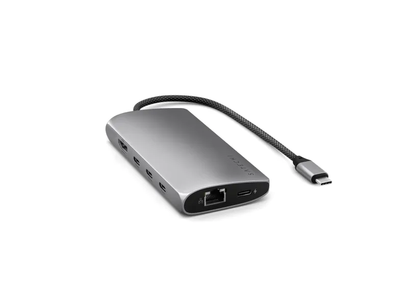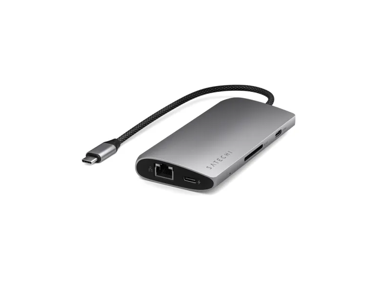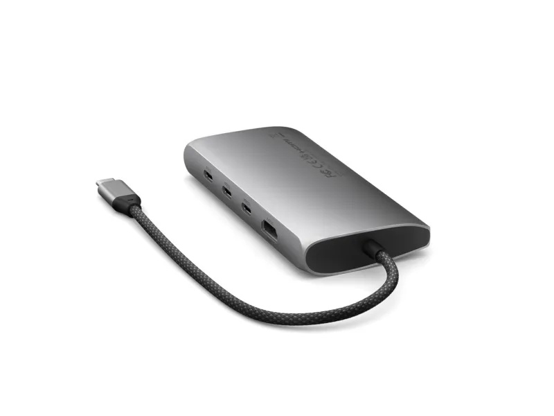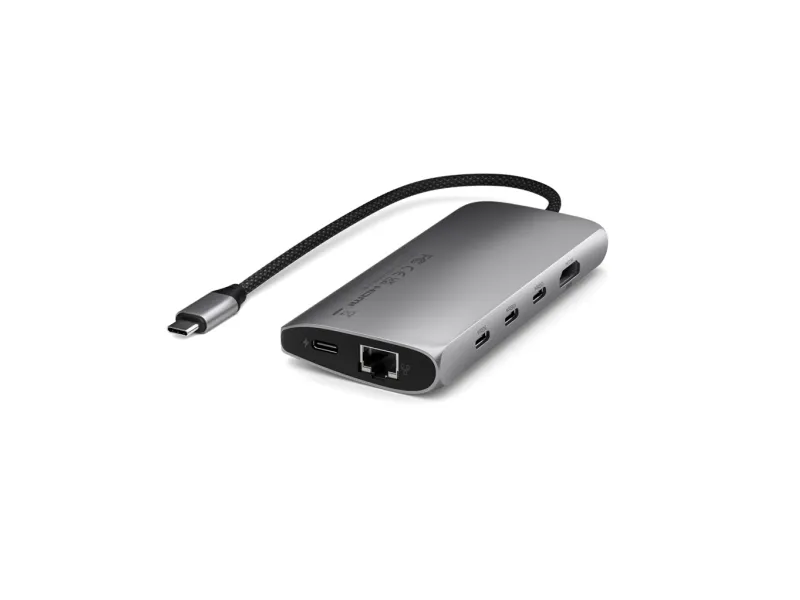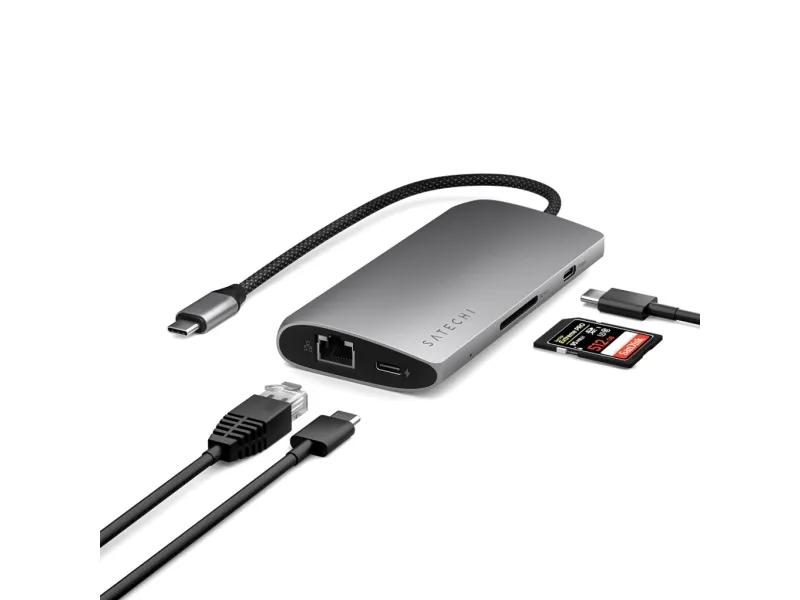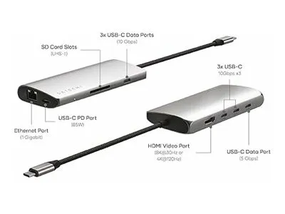 The Satechi ST-P8KEM docking station provides versatile connectivity options for modern devices. Designed with an aluminum enclosure, this docking station supports resolutions up to 8K at a refresh rate of 144 Hz, ensuring high-quality video output for demanding tasks. With multiple interfaces including USB-C with Power Delivery, USB 3.2 Gen 2, USB 3.2 Gen 1, HDMI, and RJ-45, it delivers support for audio and video, as well as networking capabilities. The single SD UHS-II memory card slot adds flexibility for storage expansion, while its pass-through charging function allows seamless power delivery to connected devices.