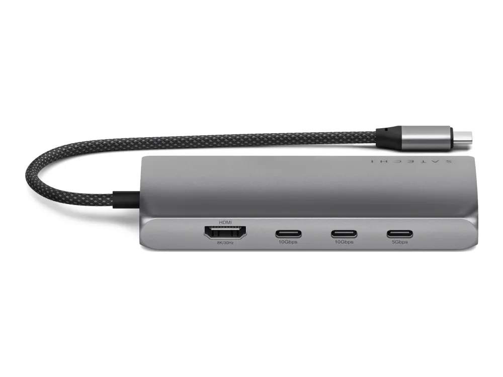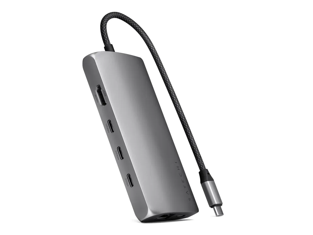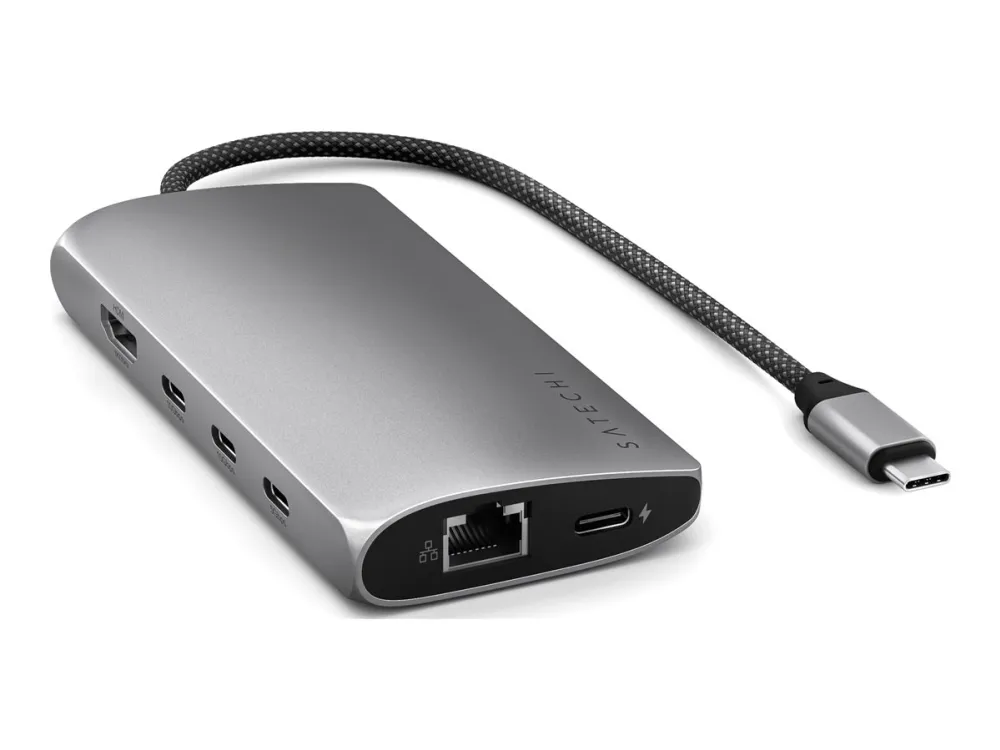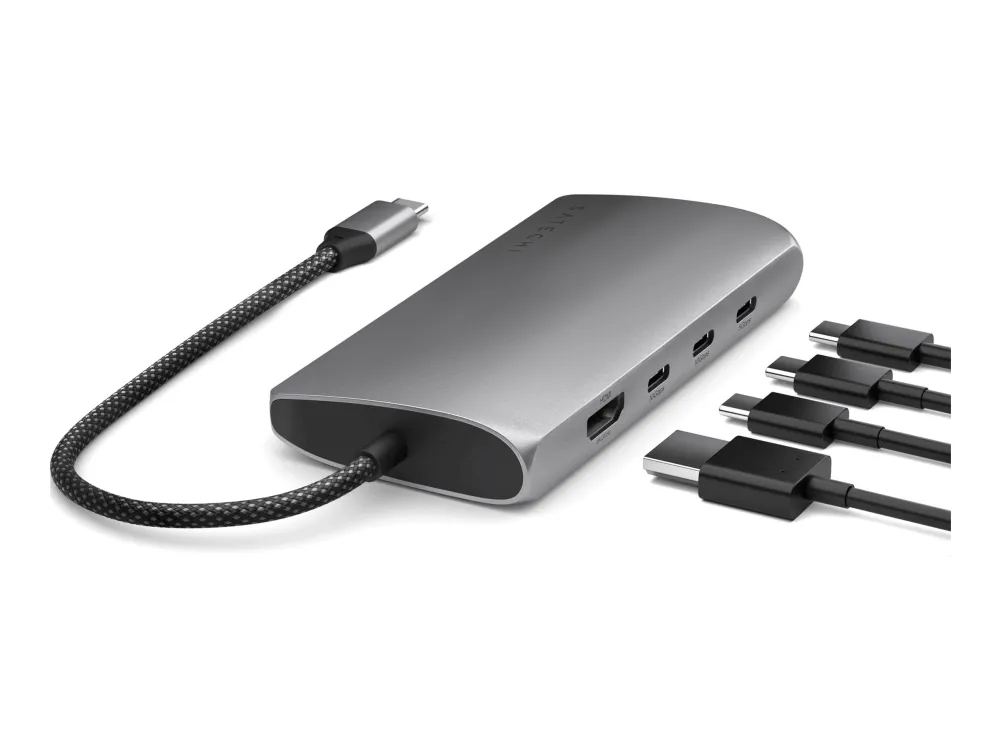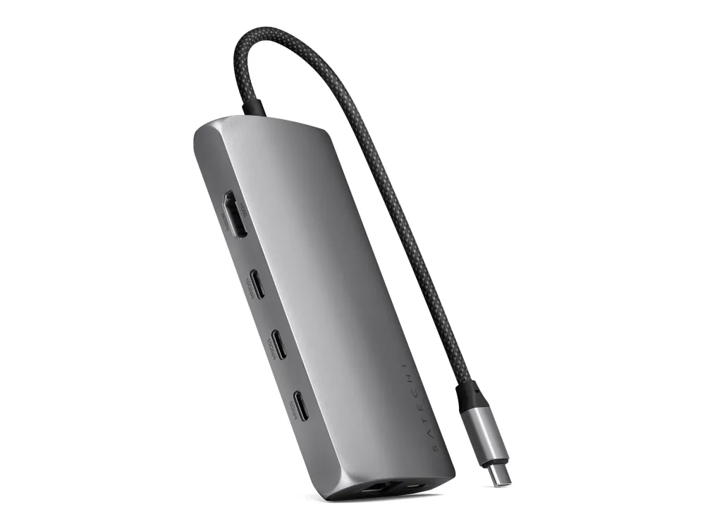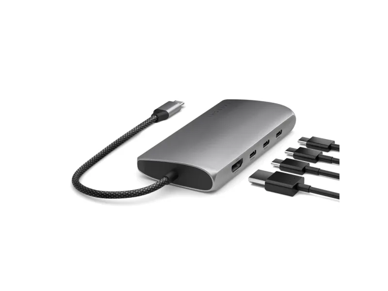 The Satechi ST-P8KEM docking station provides versatile connectivity options for modern devices. Designed with an aluminum enclosure, this docking station supports resolutions up to 8K at a refresh rate of 144 Hz, ensuring high-quality video output for demanding tasks. With multiple interfaces including USB-C with Power Delivery, USB 3.2 Gen 2, USB 3.2 Gen 1, HDMI, and RJ-45, it delivers support for audio and video, as well as networking capabilities. The single SD UHS-II memory card slot adds flexibility for storage expansion, while its pass-through charging function allows seamless power delivery to connected devices.