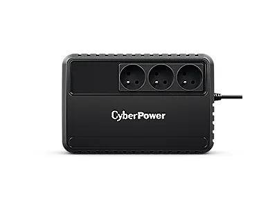 The innovative Battery Management Technology significantly increases battery efficiency and promotes increased battery performance and longer battery life. Configurable alarm allows users to switch the audible alarm on or off during battery mode to avoid unnecessary disturbances. Its brick design with mounting slots allows users to place it easily on walls, desks or other tight spaces.CyberPower BU650E-FR. UPS topology: Line-Interactive, Output power capacity: 0.65 kVA, Output power: 360 W. AC outlet types: Type E, AC outlets quantity: 3 AC outlet(s). Battery technology: Sealed Lead Acid (VRLA), Battery capacity: 5 Ah, Battery voltage: 12 V. Form factor: Compact, Product colour: Black, Housing material: Plastic. Width: 158 mm, Depth: 240 mm, Height: 91.5 mm