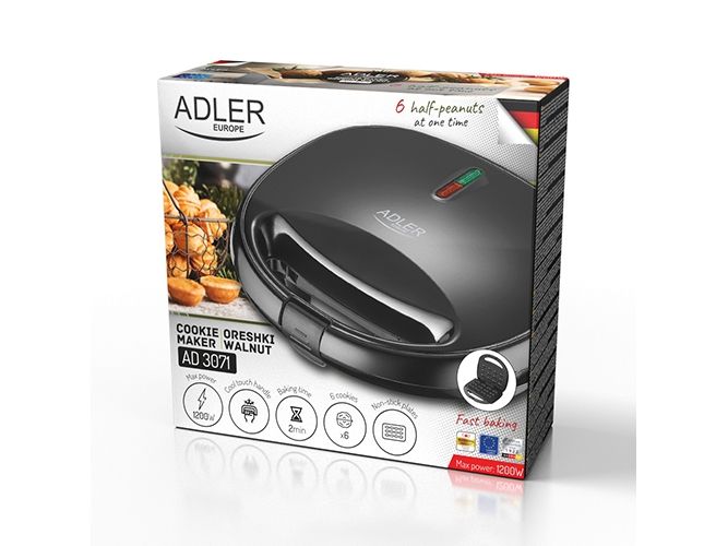 Waffeleisen Adler Nusskeksmaschine | AD 3071 | 750 W | Anzahl der Backbleche 12 | Nüsse | Schwarz