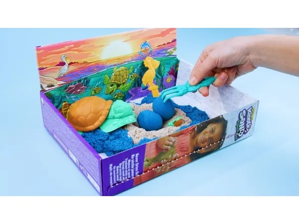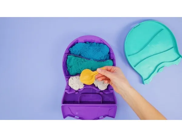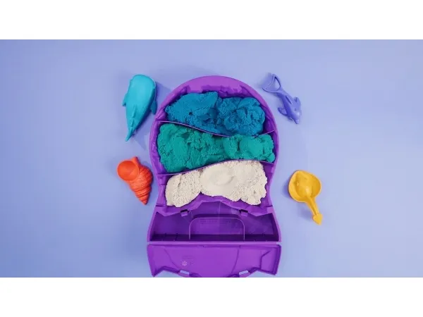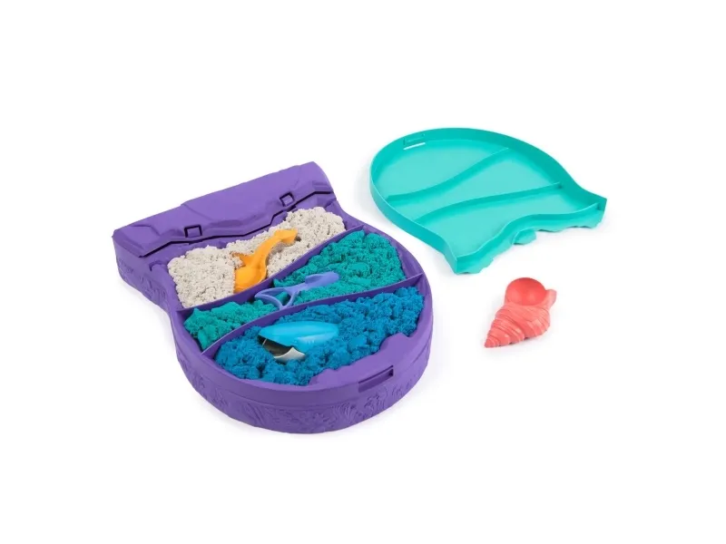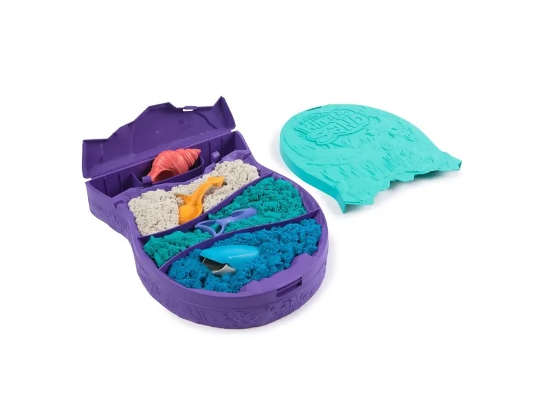 Explore the depths of the ocean with the Kinetic Sand Project Planet Deep Sea playset. This Kinetic Sand kit will spark imagination as kids dig and discover an ocean of unique multipurpose sea creature tools. Project Planet is Kinetic Sand’s line of eco friendly sustainably minded toys, made using 100% ocean-bound recycled plastics. Scoop through 24oz of white, teal, and blue Kinetic Sand with the seashell, revealing the hidden characters in each layer. Mold and scoop with the stingray, slice sand and mold a baby dolphin, and grate sand with the whale shark, mimicking underwater patterns. Kids can learn about ocean biodiversity with the fact card and after play, snap the container’s lid closed for convenient storage. The One and Only Kinetic Sand is made from natural sand that sticks to itself for easy cleanup. Create again and again and let it flow – it’s so satisfying. An alternative to arts and crafts modeling clay, Kinetic Sand is a welcome addition to the sensory bin or sensory table, activities time and Montessori toys. Kinetic Sand promotes fine motor skills and creativity in kids through independent tactile play. Feel the future with Kinetic Sand Project Planet Deep Sea.