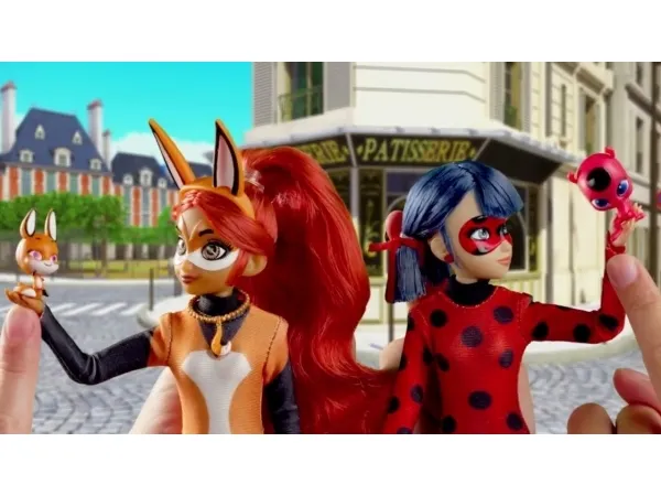 Transform into two Miraculous heroes with the push of a button! Press the button on Ladynoir's foot and watch as her super suit spins to reveal Bugnoir! Return to Ladynoir by pressing the button once more—you can switch styles again and again! The Miraculous Hero Switch doll comes with a cat ears headband and two removeable masks—one for each outfit!