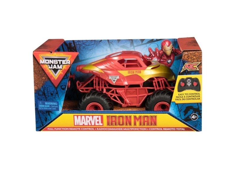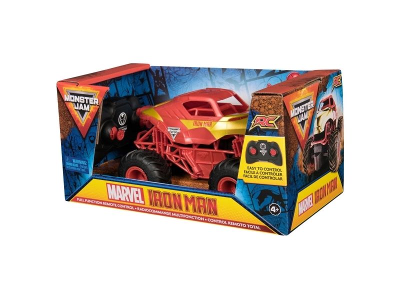 Monster Jam Iron Man 1:24 MJC Monster Jam Iron Man 1:24 Der ferngesteuerte Iron Man Monster Truck von Monster Jam ist der ideale Begleiter für heldenhafte Spielstunden. Dieser rot-goldene Truck sorgt für ein actionreiches Spielerlebnis zu Hause, ist einfach zu steuern und ermöglicht heldenhafte Abenteuer. So können sich Kinder als Teil der Welt von Iron Man fühlen und ihren eigenen Monster Truck mit einer kinderfreundlichen Fernbedienung steuern. Der Truck ist ebenso robust wie auffällig und bereit für jede Mission, die sich Kinder ausdenken. Es können mehrere Trucks gegeneinander antreten, sodass er sich ideal für Spielstunden mit Freunden und Monster Jam-Partys eignet. Er ist eine ideale Alternative zu ferngesteuerten Autos, Flugzeugen, Booten, Hubschraubern und anderen ferngesteuerten Fahrzeugen. Ob im Wohnzimmer oder im Garten, dieser Truck ist genau das Richtige für fantasievolles Spielen. Der ferngesteuerte Iron Man Monster Truck ist ein ideales Geschenk für Fans von Monster Jam und Marvel. Batterie erforderlich (nicht enthalten): 5x AAA Inhalt: * 1 ferngesteuerter Monster Jam im Maßstab 1:24 * 1 Fernsteuerung * 1 Anleitung Maße: 28,5 x 14,5 x 13,7 cm