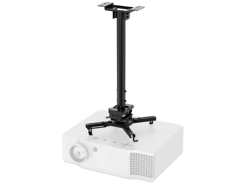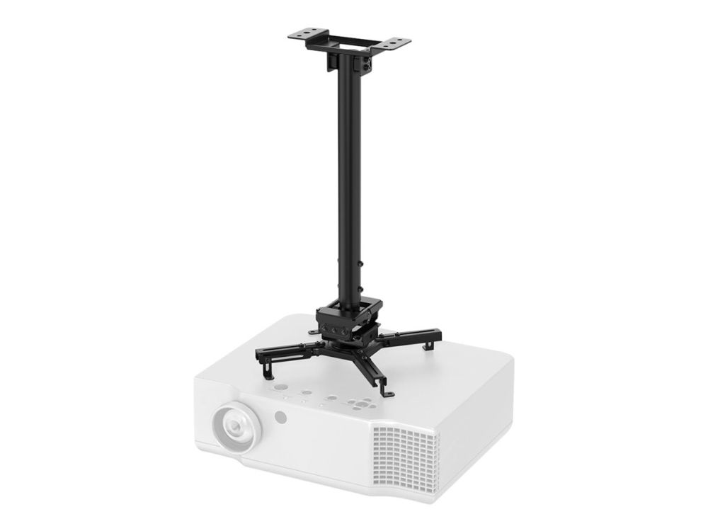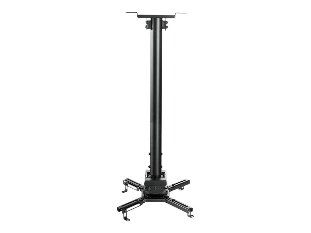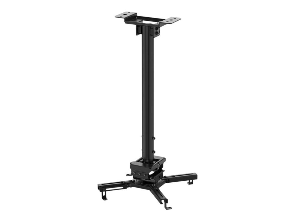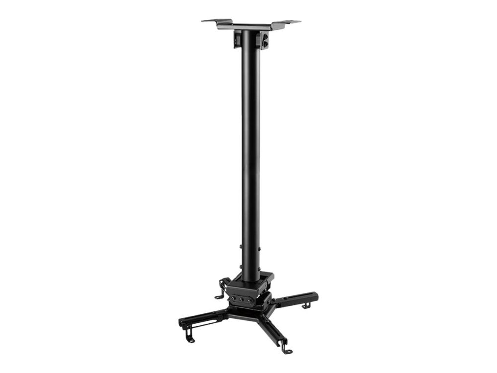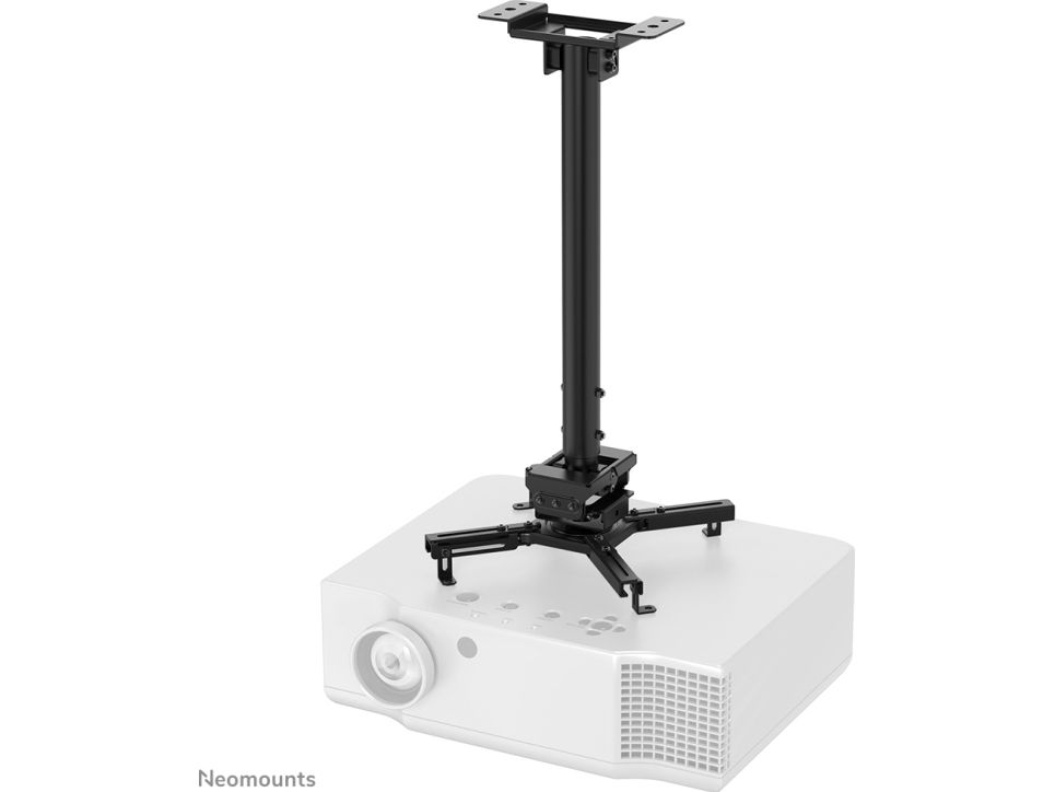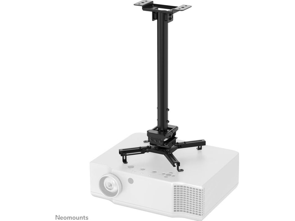 The Neomounts CL25-540BL1 is a universal projector ceiling mount. Because of the high weight capacity up to 35kg and the various adjustment options, this projector ceiling mount is widely applicable. The CL25-540BL1 has four extendable arms and the versatile tilt (+20°, -20°), rotate (360°) and swivel (+8°, -8°) technology, provides optimal placement of the projection on any canvas, screen or wall. The support is also adjustable in height from 60.5 to 90.5cm. The Neomounts CL25-540BL1 is equipped with an easy-release system, which highly eases installation; (de)installation of the projector to the projector mount can be done in an instant and by only one person. In addition, the round pole allows easy installation to a suspended ceiling. Finally, the pole of the Neomounts projector mount can be tilted on the ceiling side, so that installation against a sloped ceiling is effortless. The fixation of the mount itself is sturdy and firm, therefore vibration free. The cable management system of the CL25-540BL1 ensures the cables are neatly concealed, because they are routed through the pole of the projector ceiling mount.