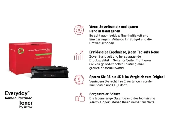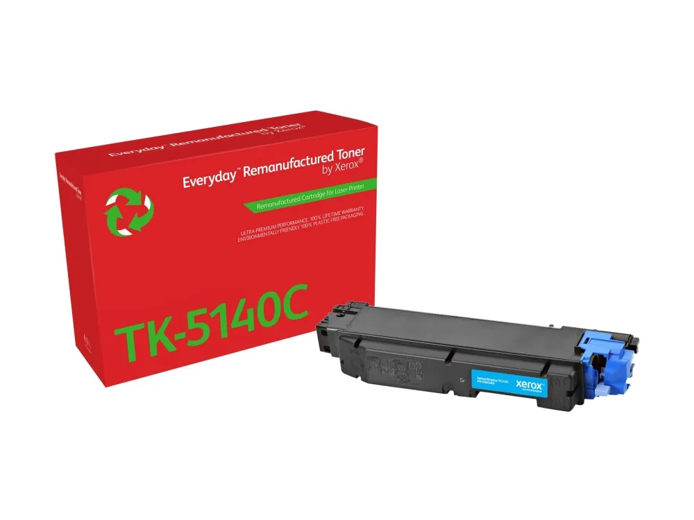 Being environmentally responsible is simply the best way to do business, because it positively impacts the health of our planet, your company and your people. Everyday Remanufactured Toner by Xerox has the lowest carbon footprint than any single-use toner cartridge. Because you shouldn't have to choose between doing your part to reduce your eco-impact and your toner costs. And compatibility with the most popular printer brands means you can enjoy benchmark Xerox quality and stewardship no matter what kind of printer you have.Everyday™ Cyan Remanufactured Toner by compatible with Kyocera TK-5140C, Standard capacity. Colour toner page yield: 5000 pages, Printing colours: Cyan, Quantity per pack: 1 pc(s)