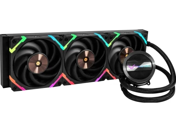 Unleash the legend. Embrace the edge. Dragonfang all-in-one liquid cooler is a predator powered by the patented, award-winning high-speed Valkyrie pump. It delivers savage cooling performance and jaw-dropping aesthetics to keep your CPU cool and your build untouchable.Valkyrie Dragonfang 360 ARGB. Type: All-in-one liquid cooler, Fan diameter: 36 cm, Bearing type: Fluid Dynamic Bearing (FDB). Product colour: Black