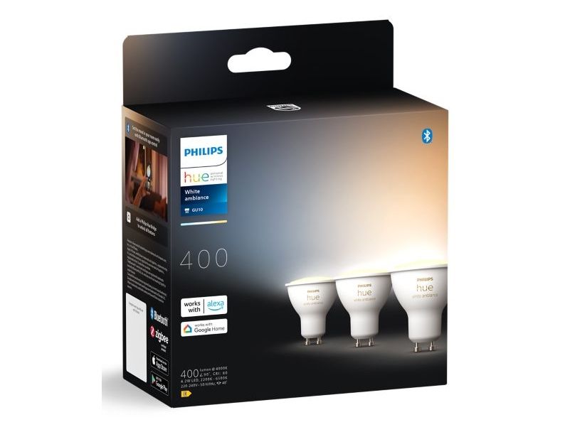 Discover the Philips Hue White ambiance light bulb, designed to enhance your home with a spectrum of warm to cool white light. This smart bulb offers seamless integration into your smart home ecosystem with Bluetooth and Zigbee connectivity, allowing for easy control via the Philips Hue App or even your voice with support for Alexa, Cortana, and Google Assistant. Whether you're setting the mood for a quiet evening or energizing your workspace, the adjustable color temperature of 2200-6500 K ensures the perfect light setting. Energy efficiency is at the forefront, with a low consumption of 5 kWh per 1000 h and a long lifetime of 25,000 hours, making it an eco-friendly choice. The dimmable feature further enhances your lighting experience, allowing for the creation of ambiance that suits every occasion. Embrace the future of home lighting with Philips Hue White ambiance.