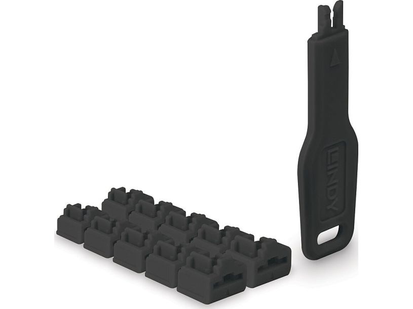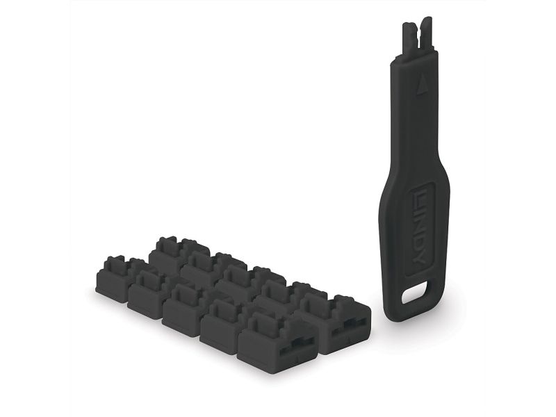 LINDY RJ45 Port Schloss 10 Stück mit Schlüssel, schwarz