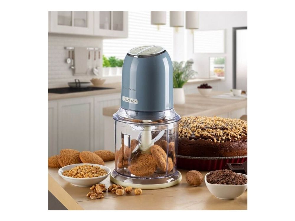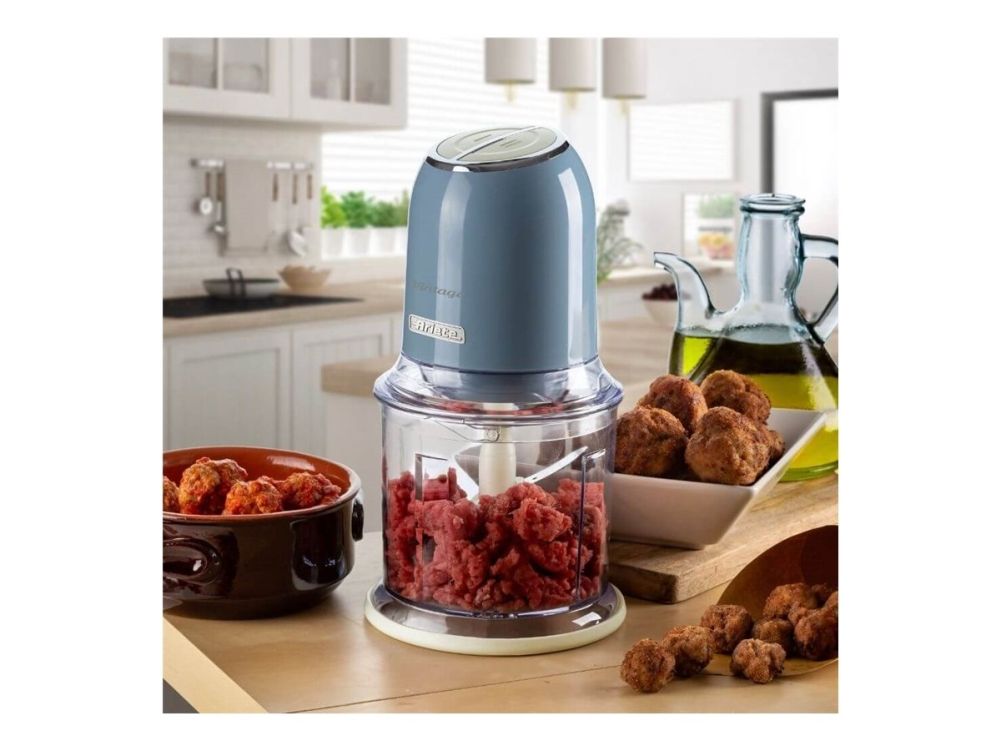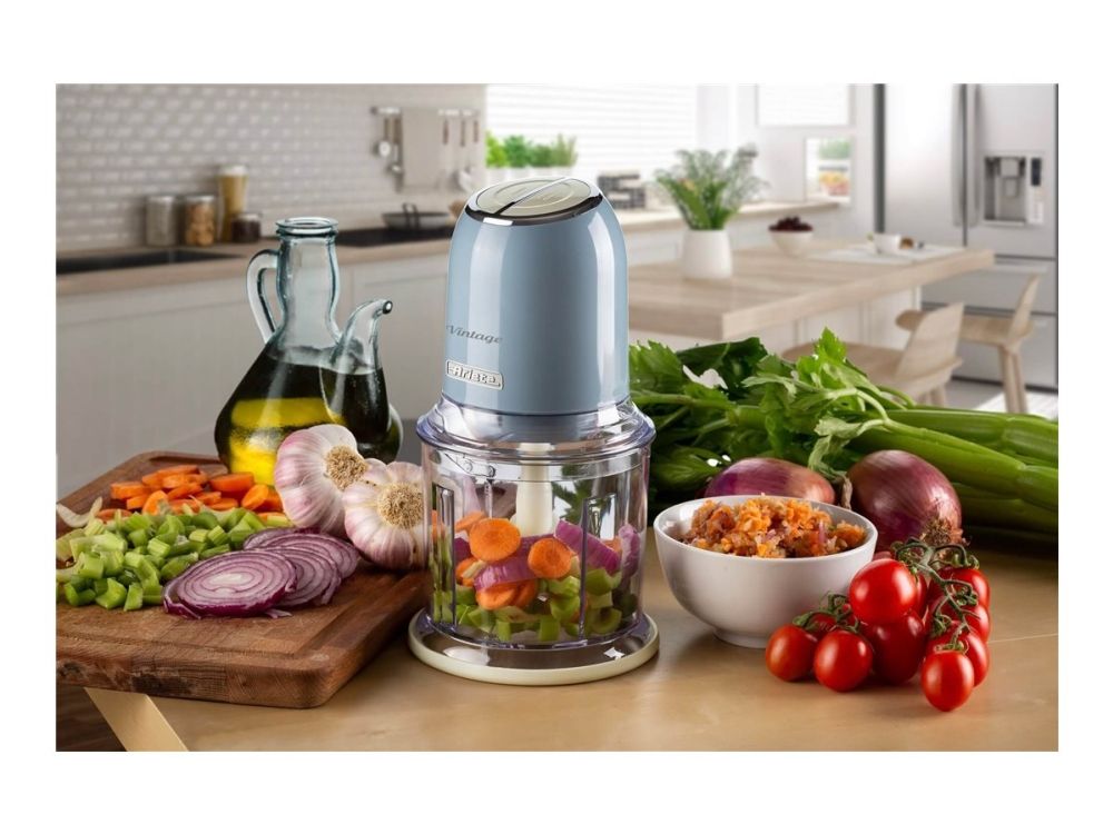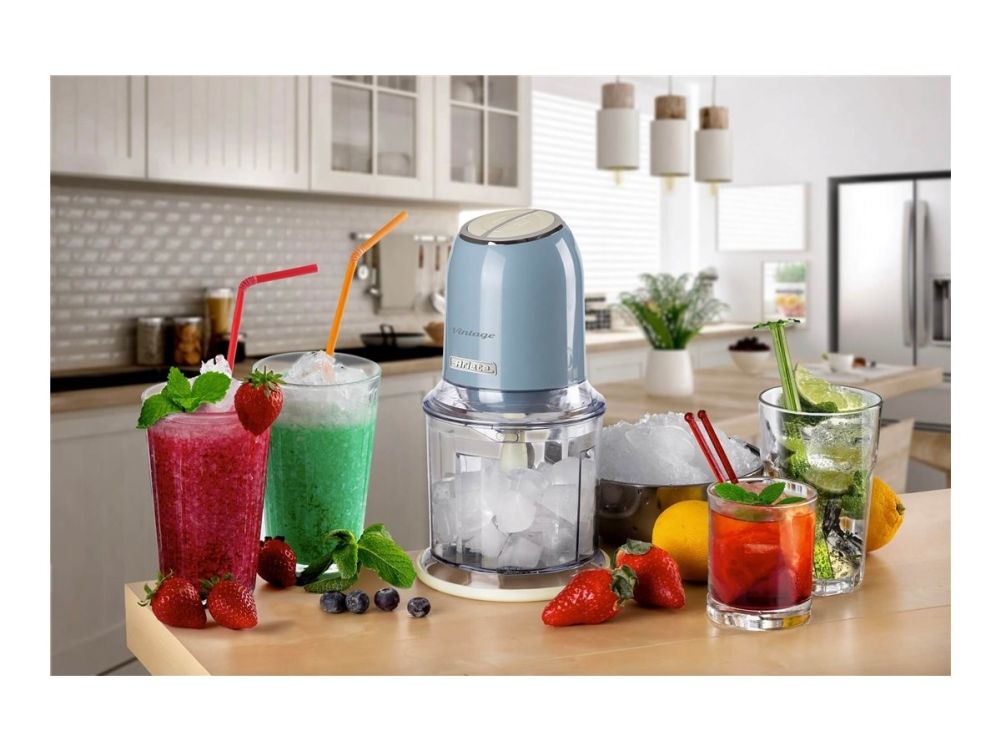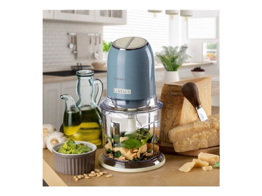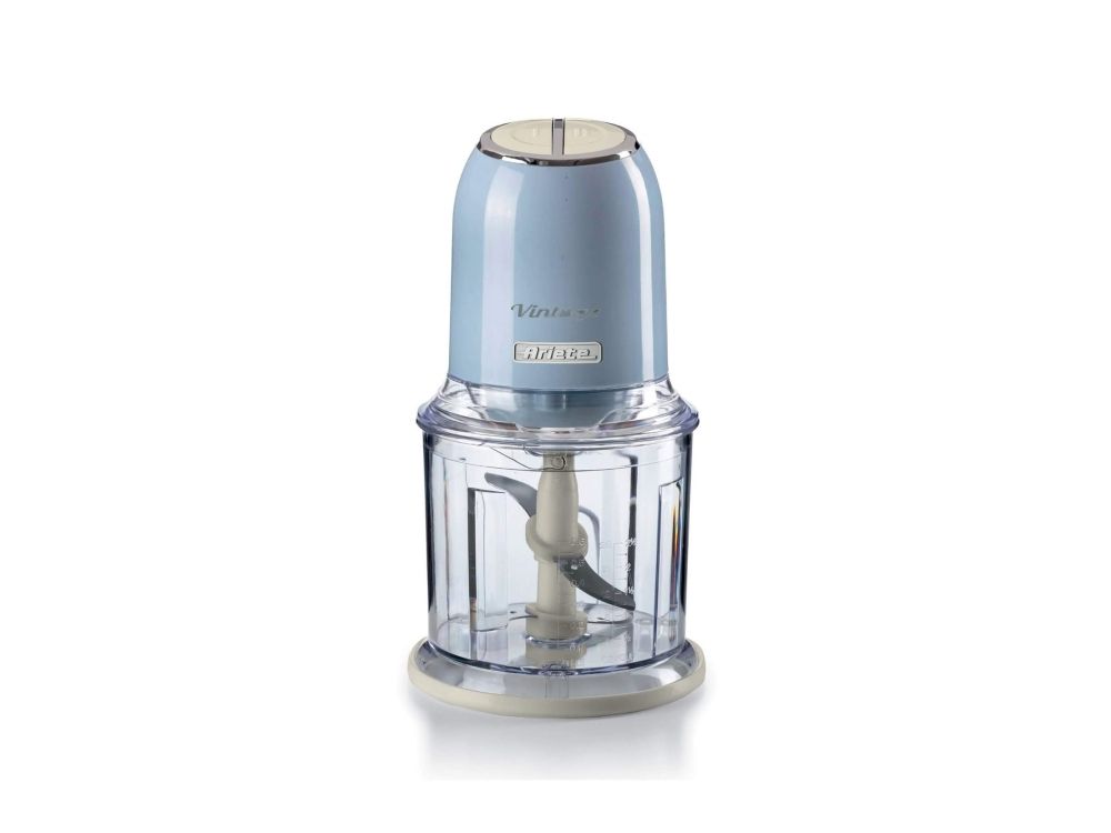 Discover the Ariete Vintage 0438/05, a chopper designed to blend seamlessly into your daily cooking routine with its efficient and user-friendly features. This chopper boasts a 400 W motor and 4 stainless-steel blades, making it powerful enough to handle a variety of ingredients, including ice, with ease. The two preset speed settings offer versatility, allowing you to choose the optimal speed for your chopping needs. With a 600 ml capacity, it's the perfect size for preparing meals without occupying too much counter space. The inclusion of non-slip feet and a see-through design not only enhances safety and stability during use but also allows for the easy monitoring of your ingredients as they chop. Whether you're preparing ingredients for a meal or making sauces and dips, the Ariete Vintage chopper is your go-to kitchen appliance for quick and efficient chopping.