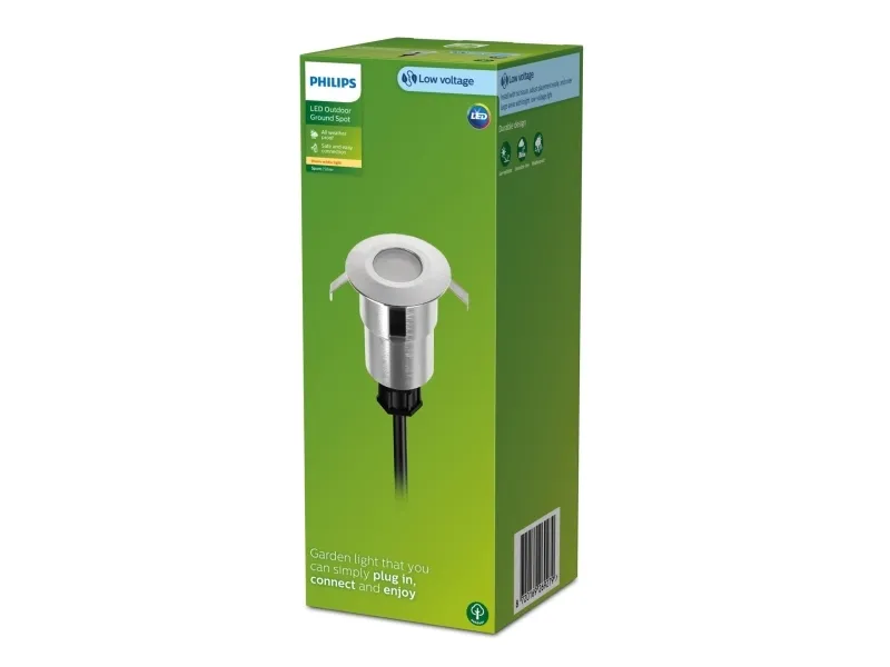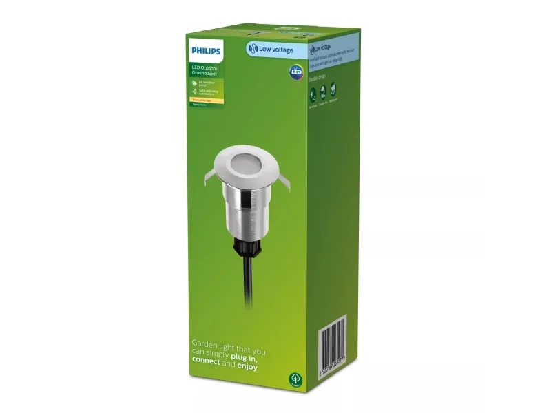 Philips 8720169269279. Type: Outdoor ground lighting, Product colour: Silver, Housing material: Aluminium. Number of bulbs: 1 bulb(s), Bulb type: LED, Light colour: Warm white. Power source type: AC, Input voltage: 220-240 V, Energy efficiency class: E. Width: 40 mm, Depth: 40 mm, Length: 40 mm. Quantity per pack: 1 pc(s), Package width: 77 mm, Package depth: 77 mm