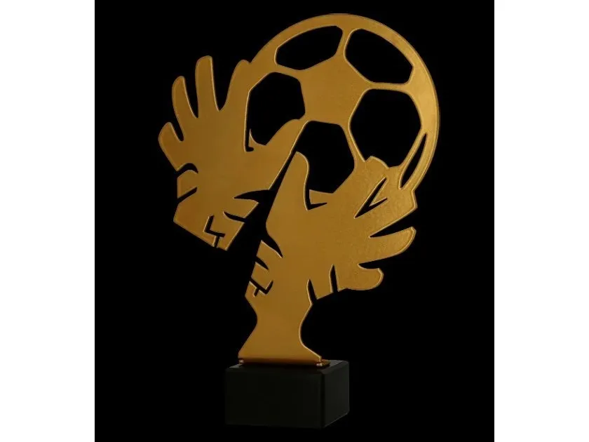 Victoria Sport Metalltrophäe mit Marmorsockel - Fußballtorwarthandschuh + Ball - ver. 2