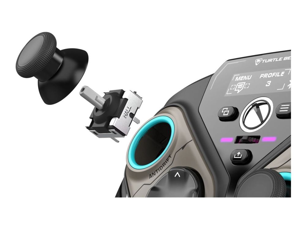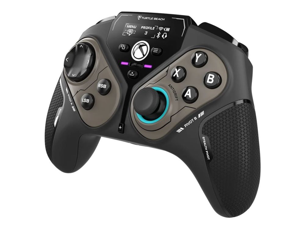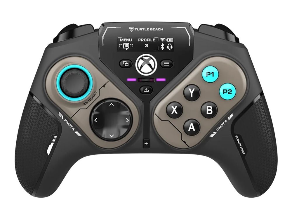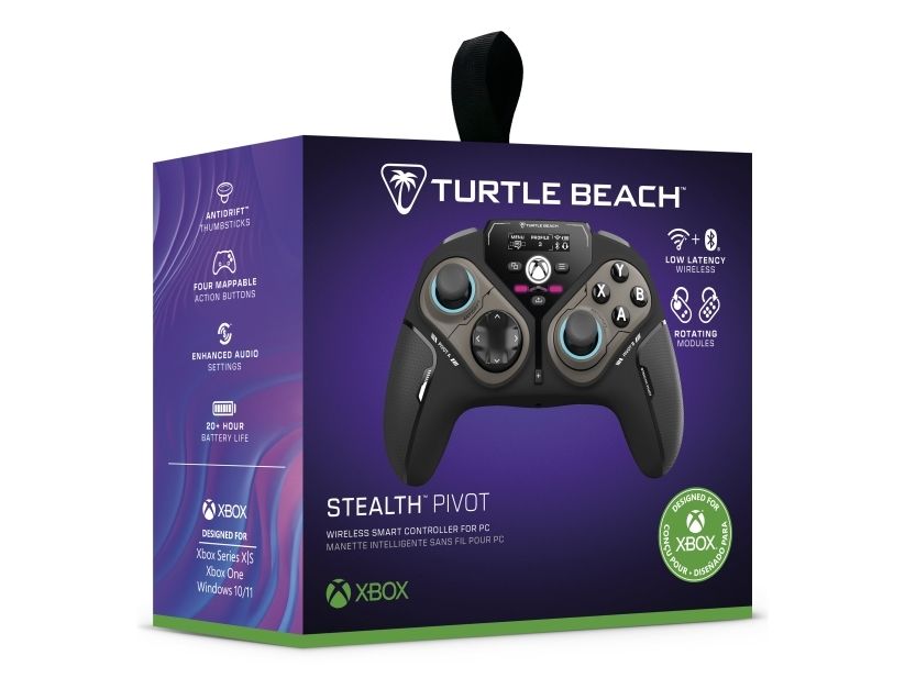 The Turtle Beach Stealth Pivot gamepad delivers an engaging gaming experience with versatile connectivity options, including wireless 2.4 GHz and Bluetooth, as well as wired connection. Enjoy seamless gameplay with features like adjustable vibration, interchangeable thumbsticks, and dedicated audio and microphone controls. Designed for comfort and precision, this gamepad includes a modular design and AntiDrift thumbsticks, ensuring longevity and performance during intense gaming sessions. With up to 20 hours of battery life and a play and charge option, users can stay in the game longer without interruptions.