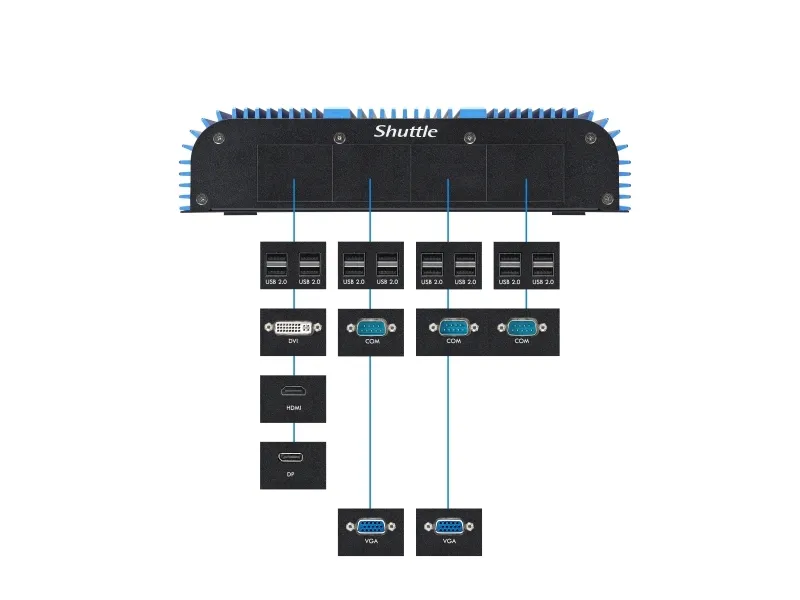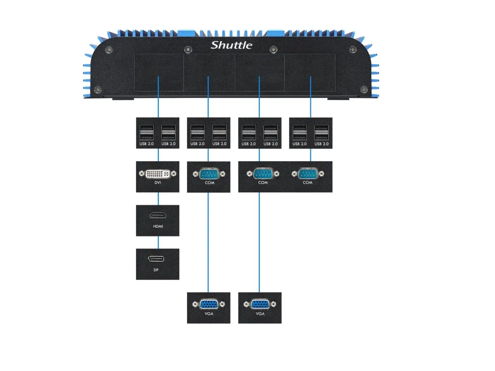 Shuttle BPCAL02-i5 industrial Box-PC, Core i5-1235U , 2x SO-DIMM, 2x LAN, 1x COM, 1xHDMI,4x USB, lüfterlos, 24/7 Dauerbetrieb, 2,6L Größe PC, Mini-PC Barebone, DDR5-SDRAM, PCI Express, Serial ATA III, Ethernet/LAN, 90 W