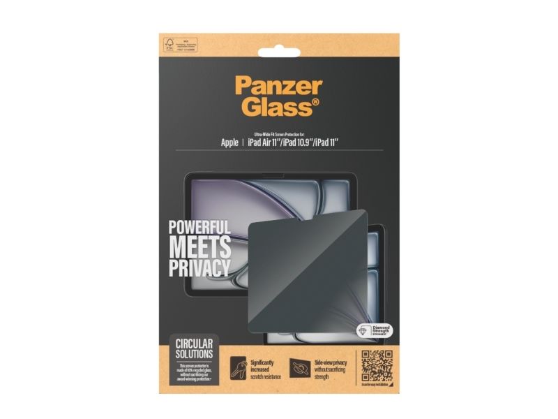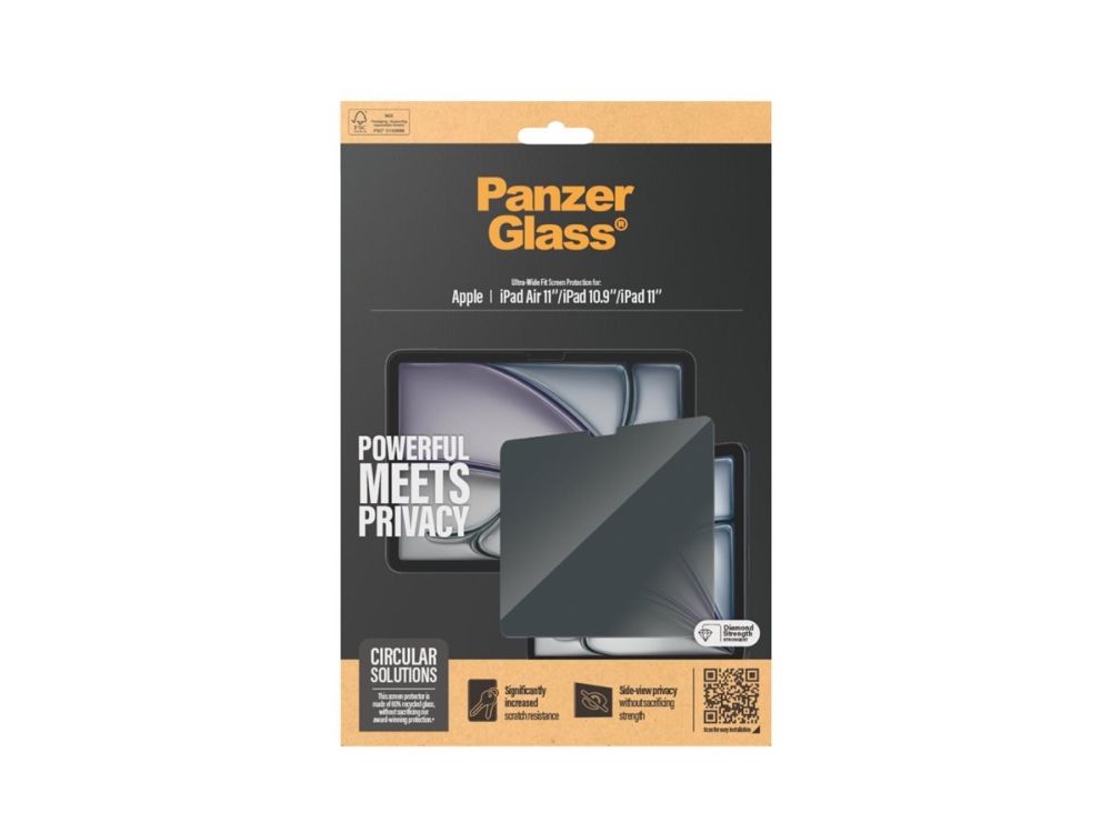 PanzerGlass Displayschutz für Tablet – ultrabreite Passform – Glas mit Sichtschutzfilter – 10,9" oder 11" – Rahmenfarbe schwarz – für Apple 10,9-inch iPad, 11-inch iPad Air, iPad A16 Wi-Fi, A16 Wi-Fi + Cellular (P2833)