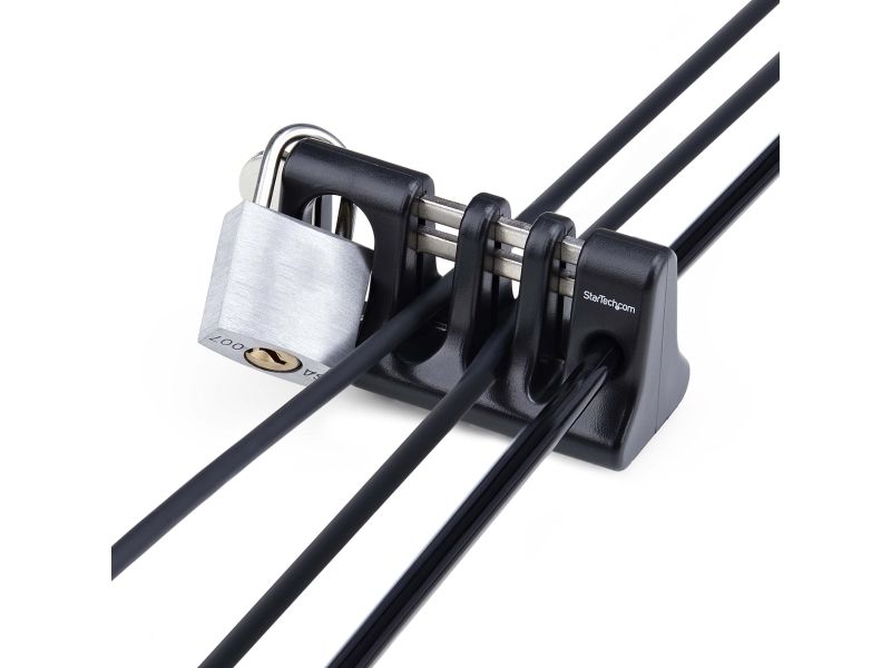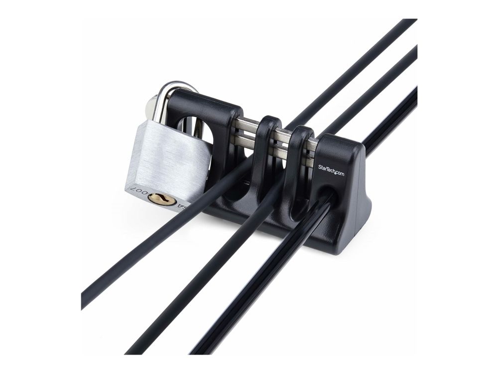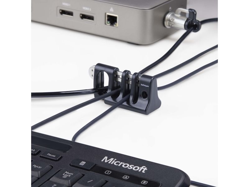 StarTech.com Peripheriekabel-Ankerschloss/Kabelhalter, Selbstklebende Computer Kabelsicherung, Kabelsperre für gemeinsam genutzte Büro- und öffentliche Computer, Einsatz mit Laptop-Kabelschloss, Kabelhalter, Tisch/Bank, Kunststoff, Stahl, Schwarz