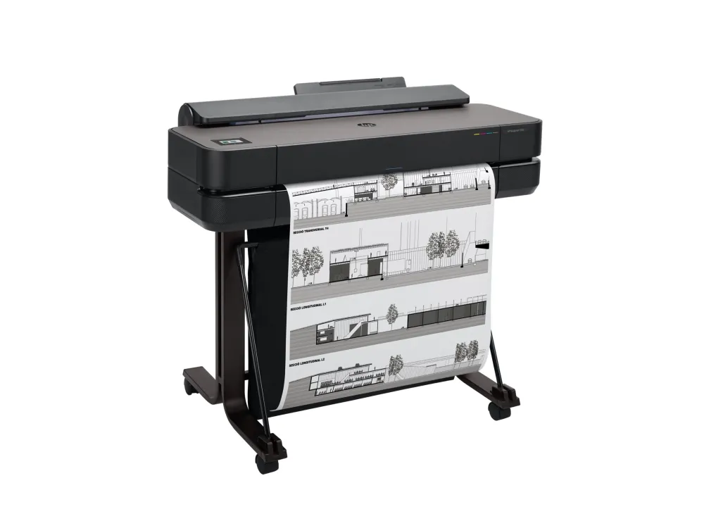 Dynamic security enabled printer Certain HP printers are intended to work only with cartridges that have a new or reused HP chip or electronic circuitry. These printers use dynamic security measures to block cartridges using a non-HP chip or electronic circuitry. Periodic firmware updates will maintain the effectiveness of these measures and block cartridges that previously worked. Reused HP chips and electronic circuitry enable the use of reused, remanufactured, and refilled cartridges.HP Designjet T650 24-in Printer 2025 edition. Print technology: Thermal inkjet, Maximum resolution: 2400 x 1200 DPI, Page description languages: HP-GL/2, HP-RTL, URF, JPEG, CALS G4. Maximum print size: A1 (594 x 841 mm), Paper tray media types: Bond paper, Coated paper, Glossy paper, Heavy paper, Matte paper, Photo paper, Plain paper, Satin..., ISO A-series sizes (A0...A9): A1, A2, A3, A4. Ethernet LAN data rates: 1000 Mbit/s. Product colour: Black, Internal memory: 1024 MB, Certification: Compliant with Class B requirements, including: USA (FCC rules), Canada (ICES), EU (EMC/RED.... Power consumption (standby): 0.2 W, Power consumption (typical): 35 W, Power consumption (sleep): 2.1 W