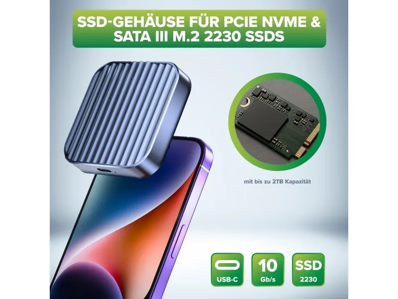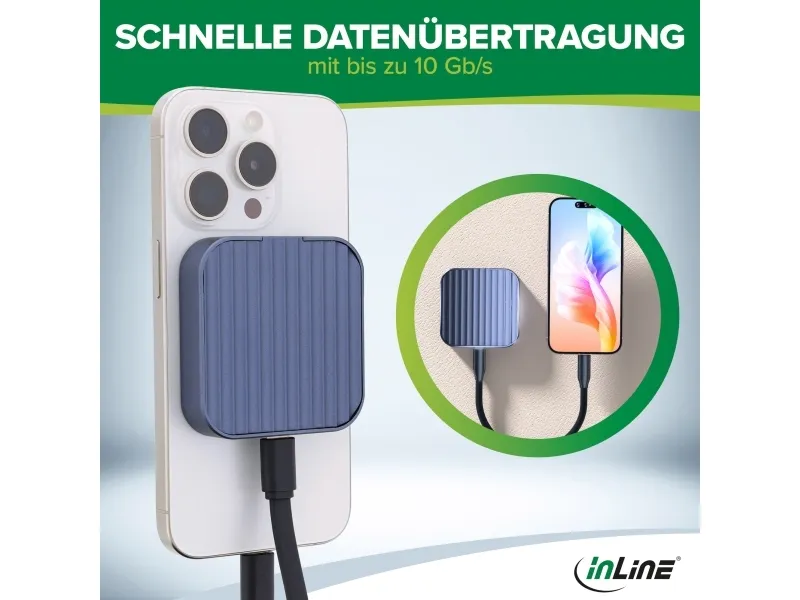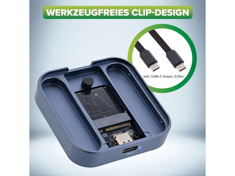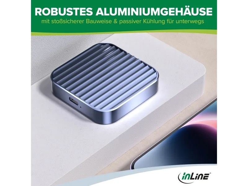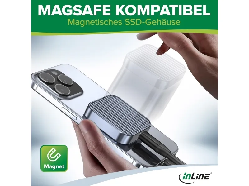 InLine Clip Case - Magnetisches USB-C Gehäuse für SATA III & NVMe M.2 SSDs, SSD-Gehäuse, M.2, M.2, PCI Express, Serial ATA III, 10 Gbit/s, USB Anschluss, Grau