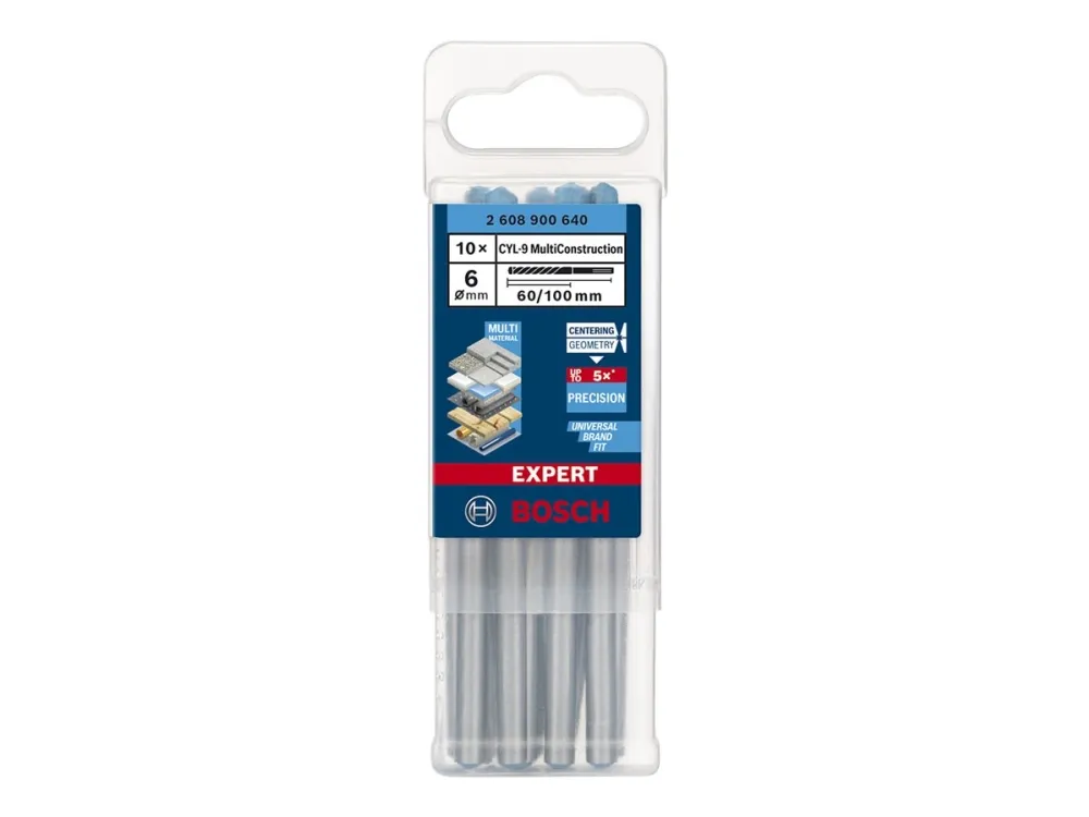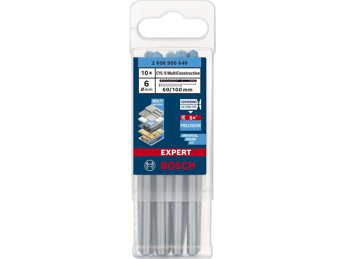The Bosch EXPERT CYL-9 MultiConstruction Cylindrical Drill Bit is the one drill bit that should always be in your toolbox: you'll never get stuck on a job or waste time looking for the right bit.