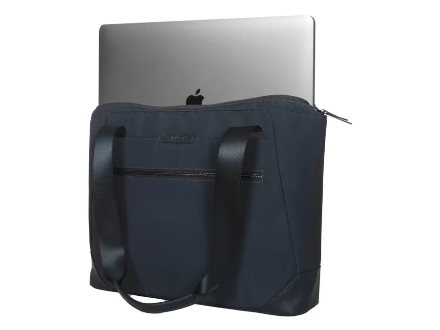The Targus Ávila notebook carrying tote is designed for the eco-conscious individual who values functionality and style. Its sleek vegan leather construction and recycled plastic bottle materials contribute to environmental sustainability and ensure durability. With a capacity of 13 liters, this tote boasts numerous compartments including a front zippered pocket, interior zippered pocket, and back stash pocket, making organization effortless. The trolley strap and dual top carry handles provide versatile carrying options, while the water-resistant features offer protection against the elements. Suitable for notebooks up to 16 inches, this tote is perfect for both business and casual use, ensuring that your devices travel safely and securely.